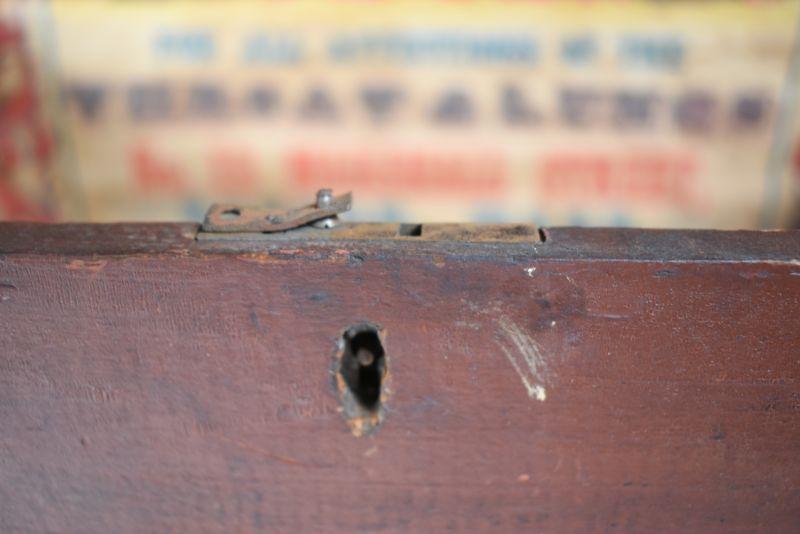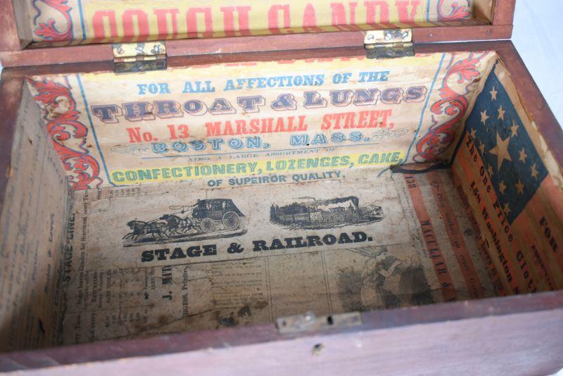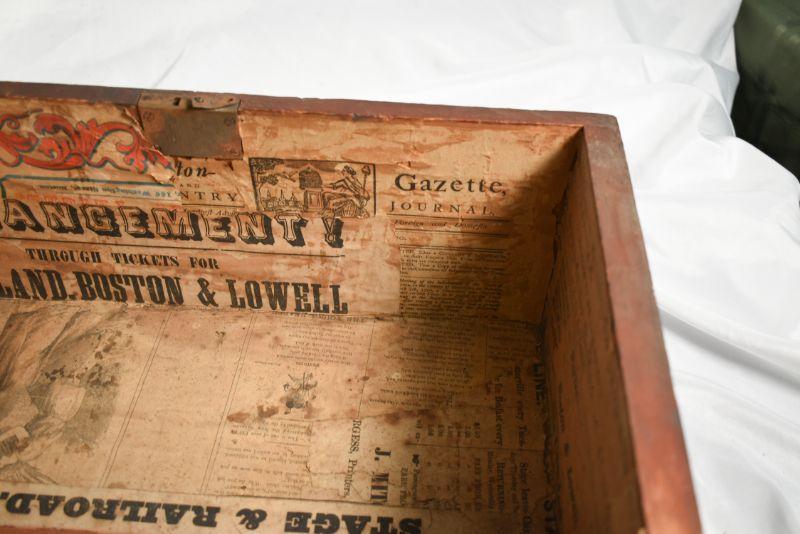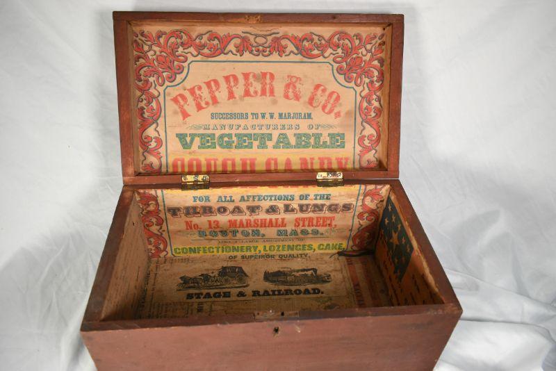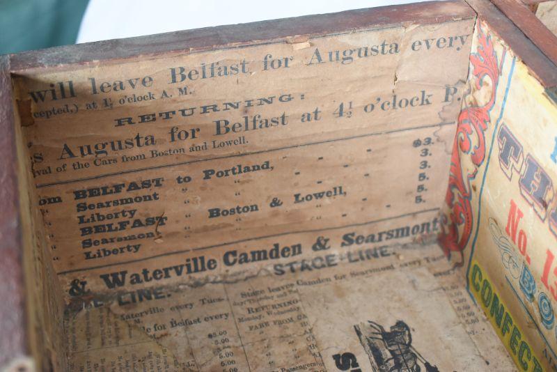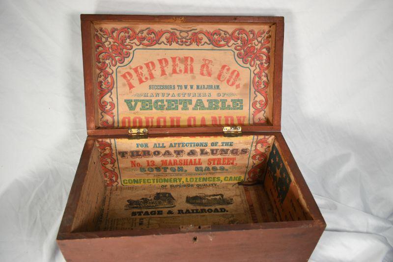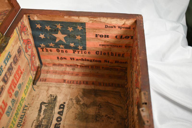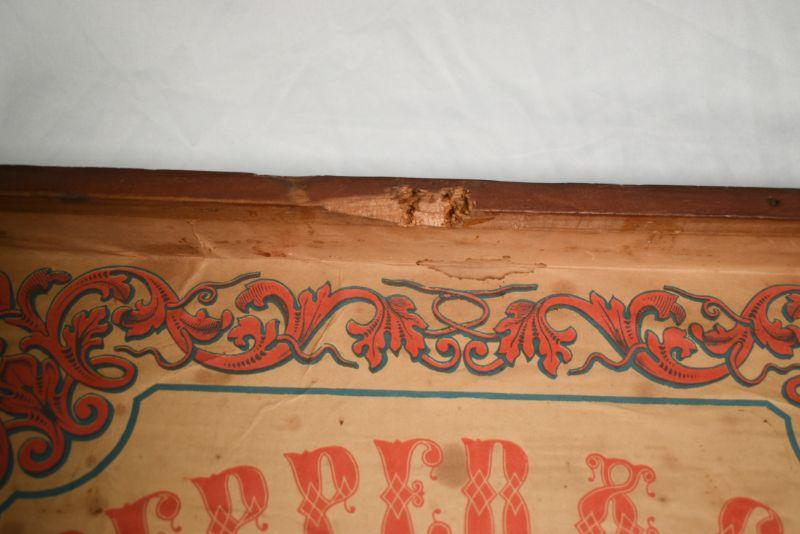 Vintage wood box, painted on the outside, with vintage advertisements attached to the inside. So cool! **Please read Terms and Conditions before placing a bid. Pick up is Sunday, December 22 from 11am to 3pm or Monday, December 23 from 4pm-7pm in Mantua, NJ. All sales are final. All sales are as is, where is. Please review all photos. Props are not included. Measurements are approximate.