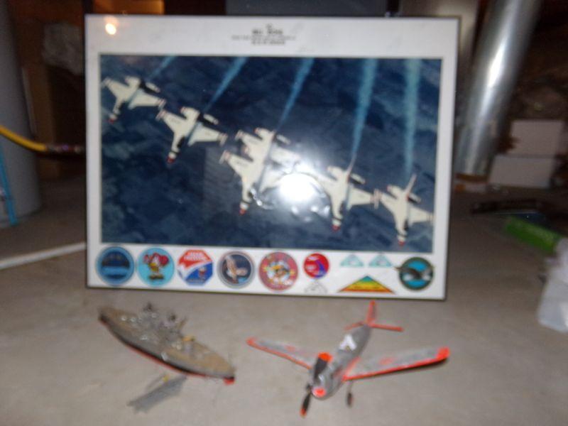 FRAMED POSTER, MODEL PLANE AND SHIP, FALCON 200 PAPER PLANE.