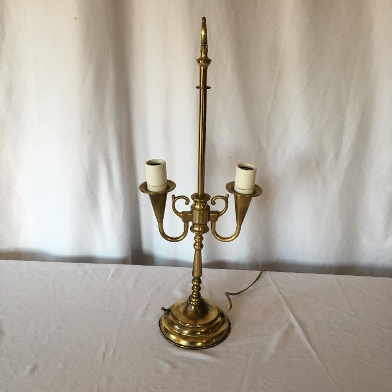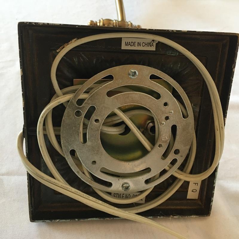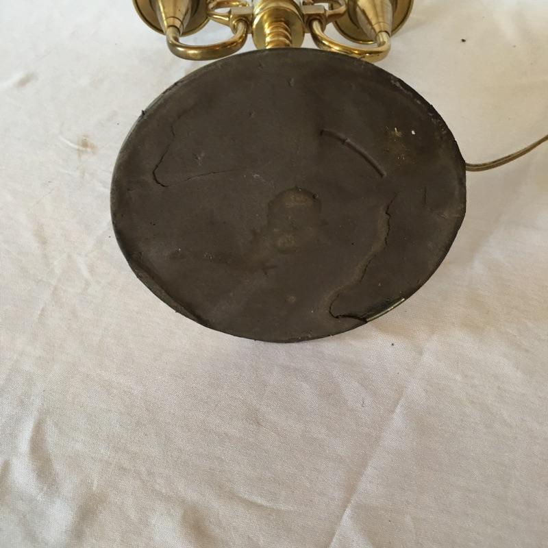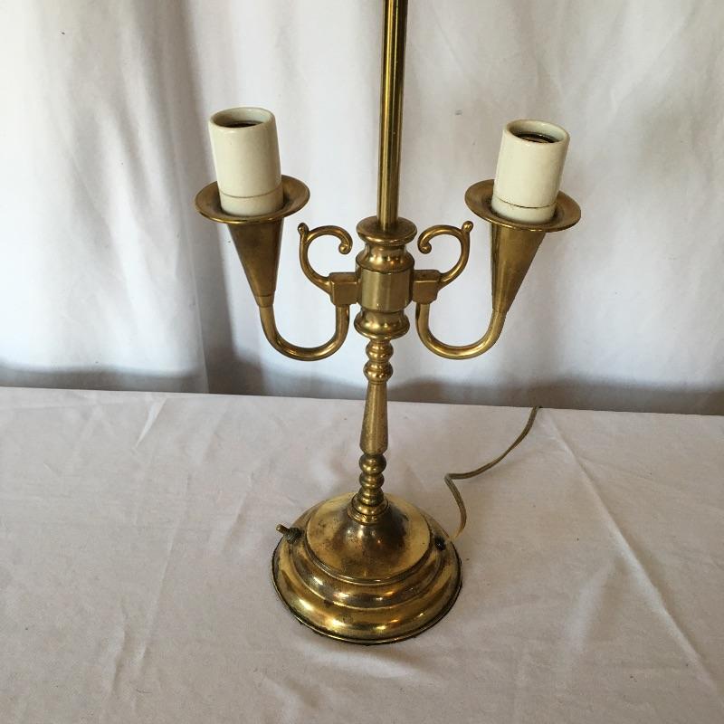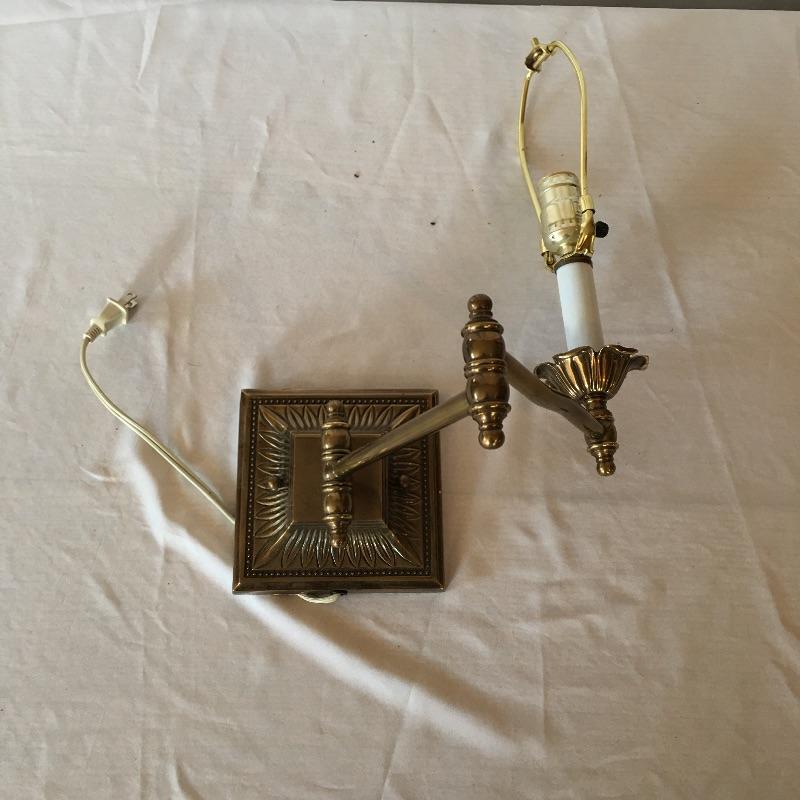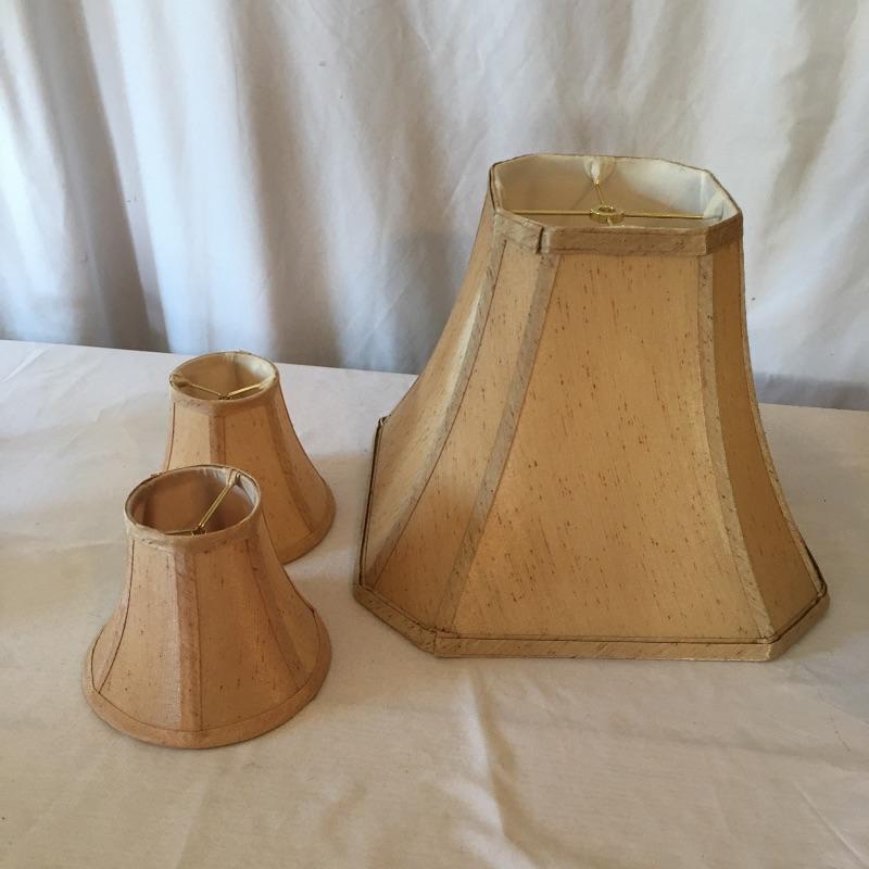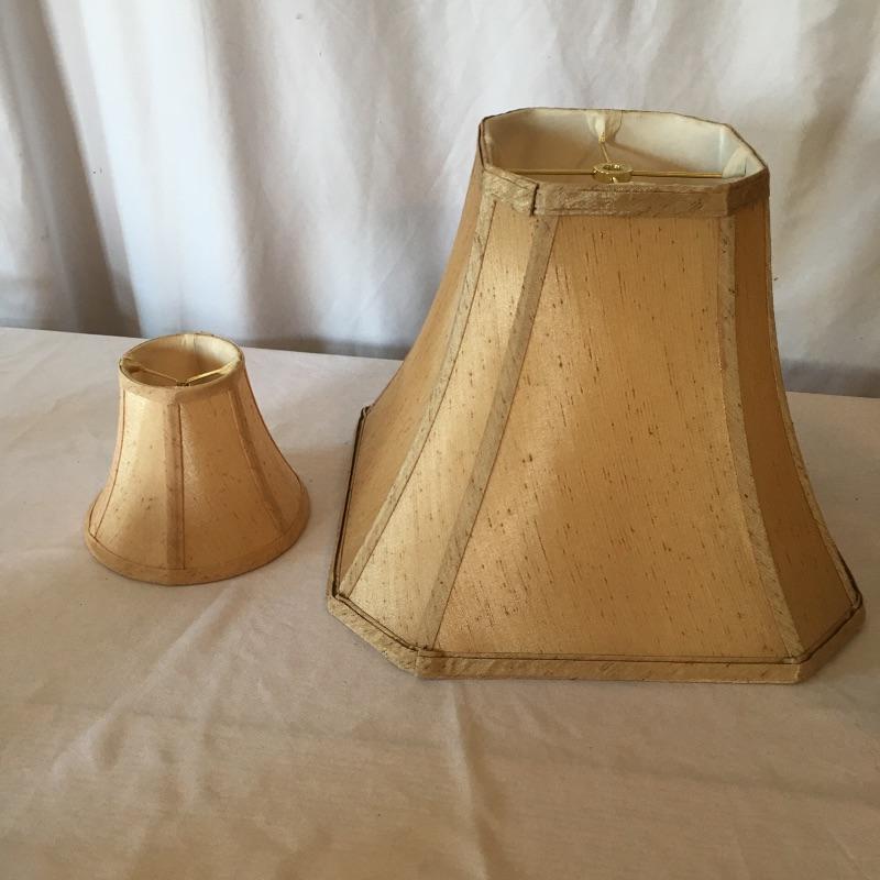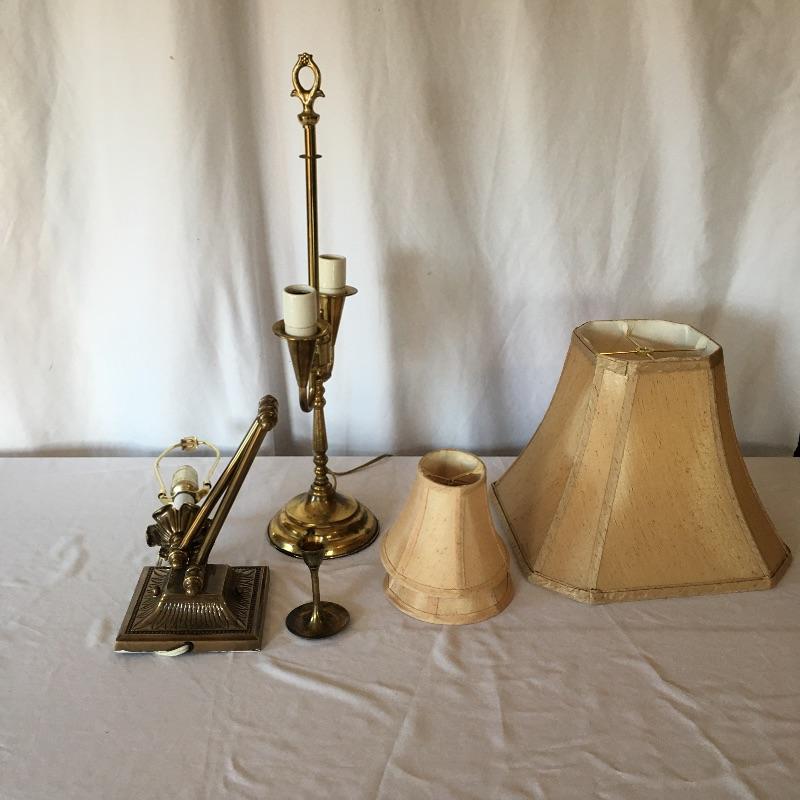 This table lamp come with shades. Also includes wall lamp that includes shade and a small candle holder. Lamp measures 6” x 8” x 23”.