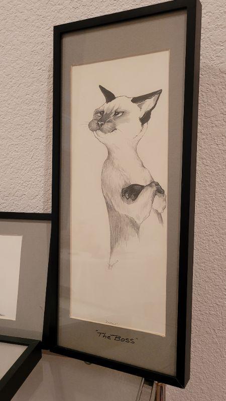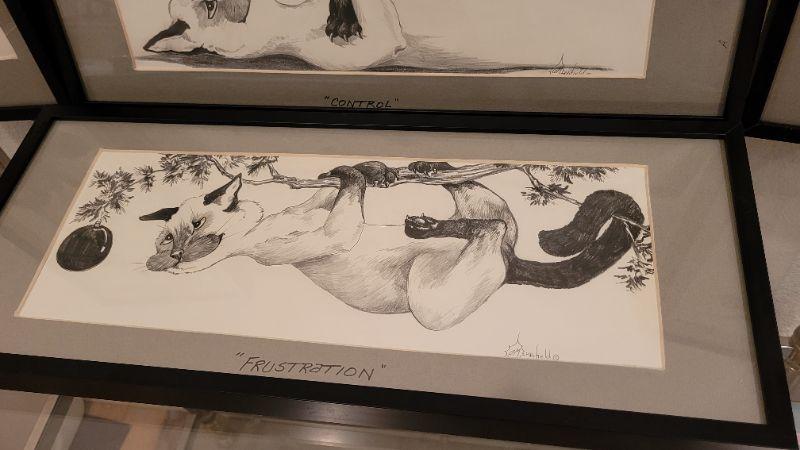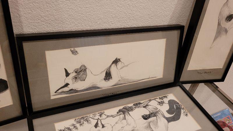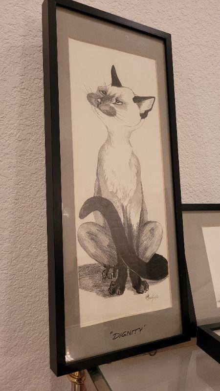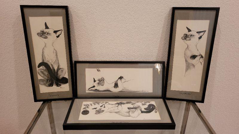 Lot 148: Set of (4) Framed Cat Playful Art Signed