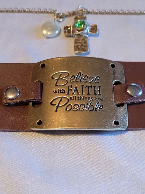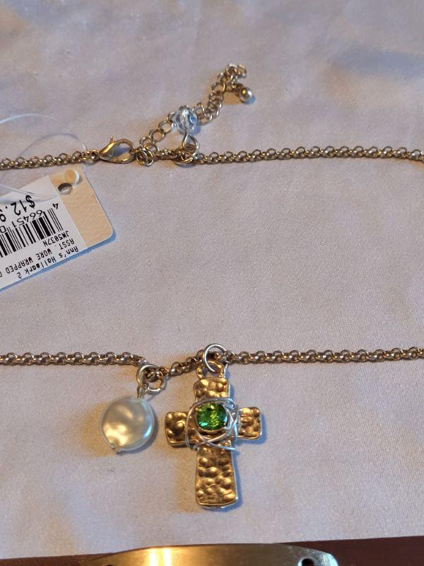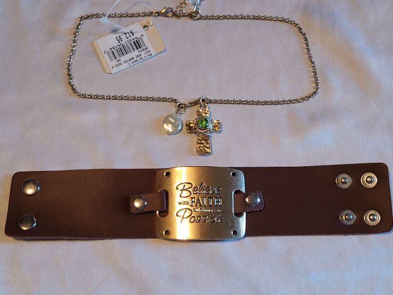 Lot 148: New Gold Cross Necklace and Inspirational Bracelet