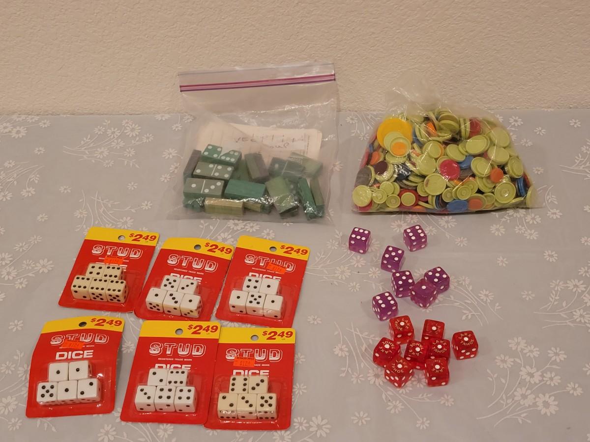 Lot 148: Tahoe Casino Dice, Stud Dice and Flip Off Game pieces