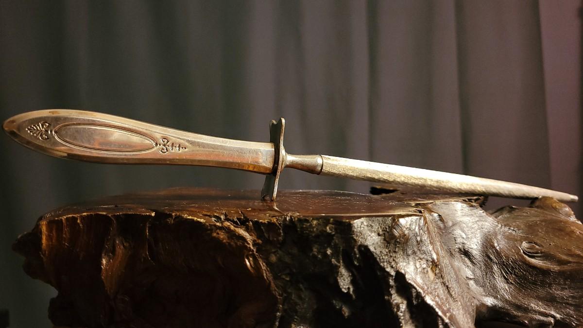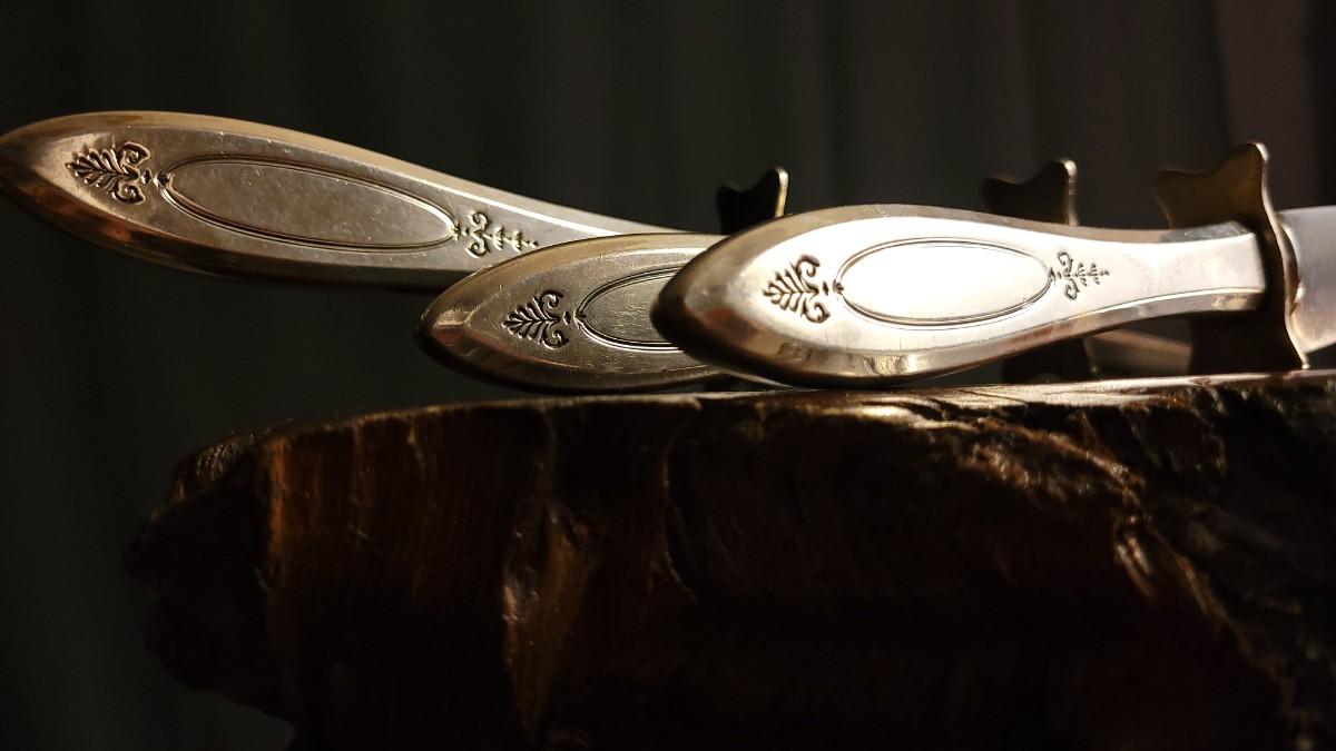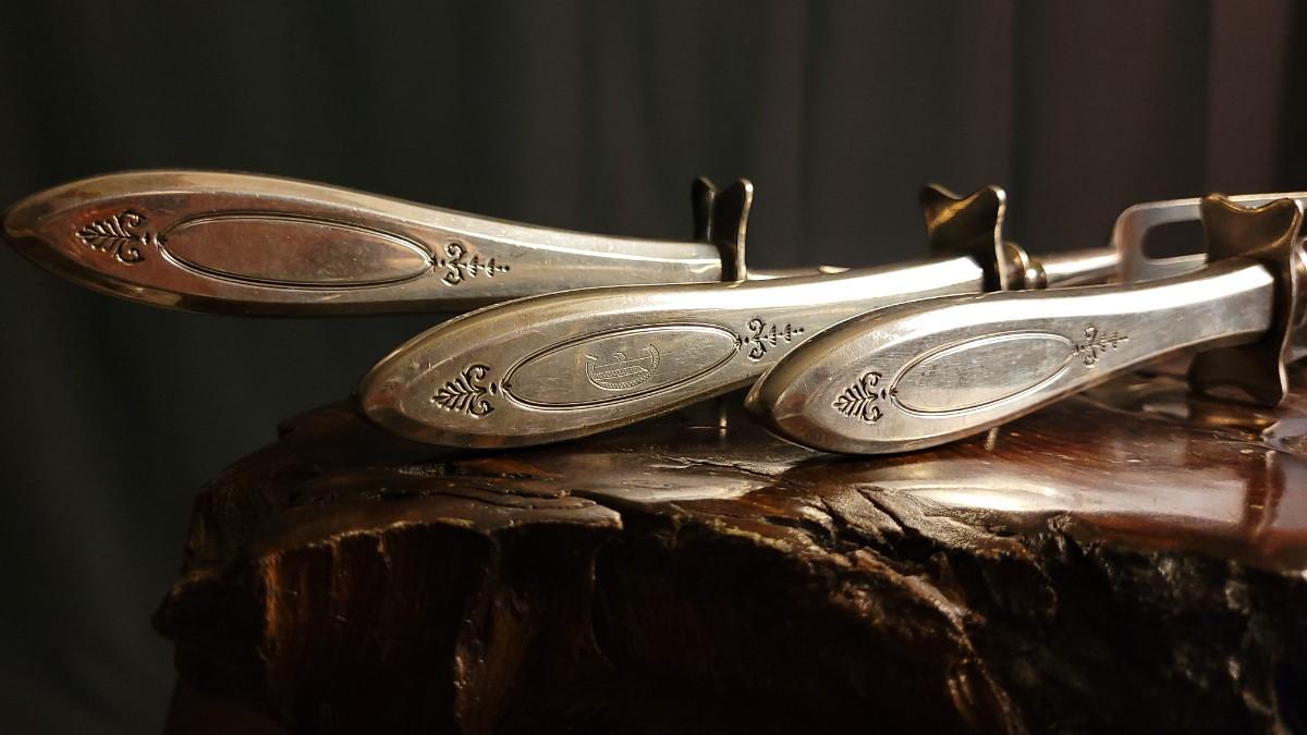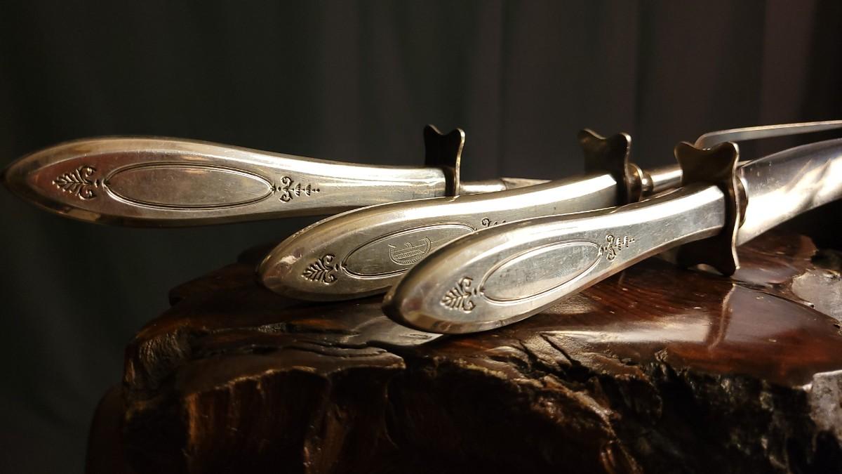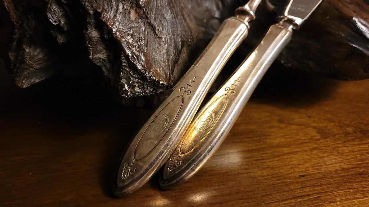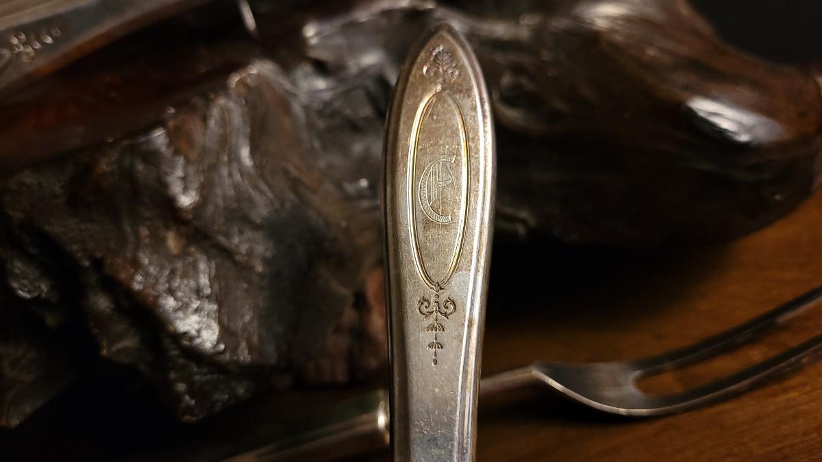 Lot 148: (2) Vintage Silverplated COMMUNITY Carving Sets (Large & Small) w/ 14" Sharpening Rod MONOGRAMMED "E"