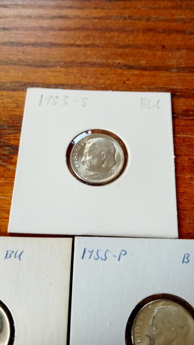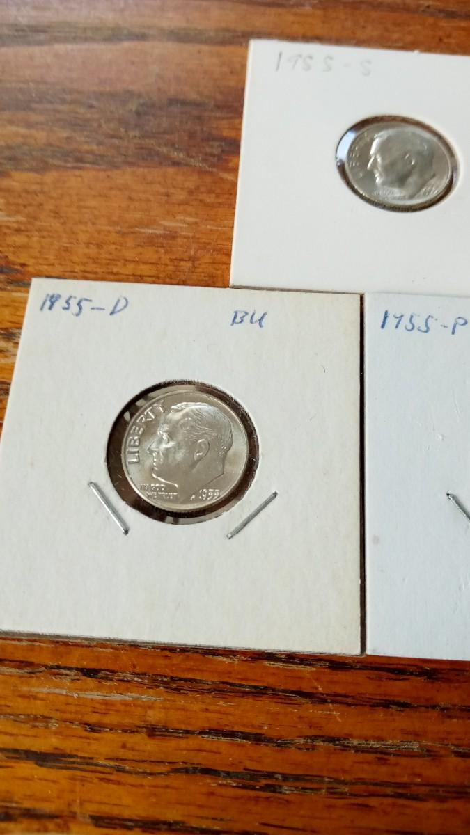 1955, 1955-D, AND 1955-S ALL IN MINT SHAPE THESE ARE THE RARE DIMES IN THE SERIES IN GREAT SHAPE LIKE THEY CAME FROM THE MINT