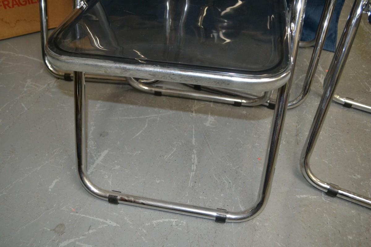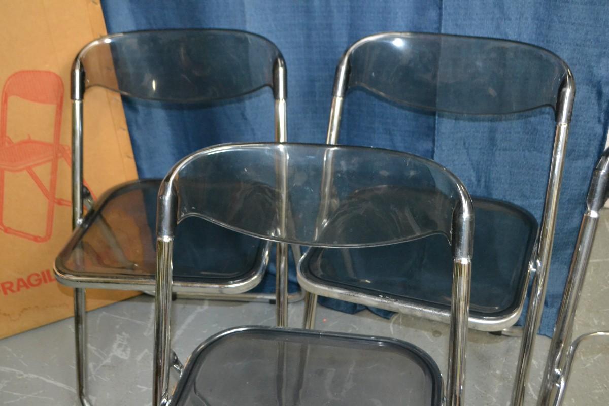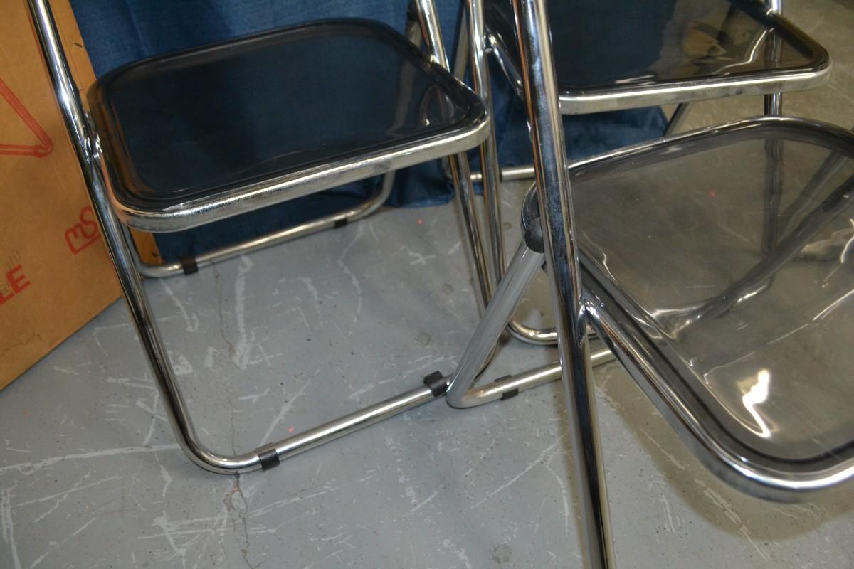 LOT 148 THREE ACRYLIC FOLDING CHAIRS AND ONE FRAME BY ALSTON QUALITY INDUSTRIES MADE IN ITALY