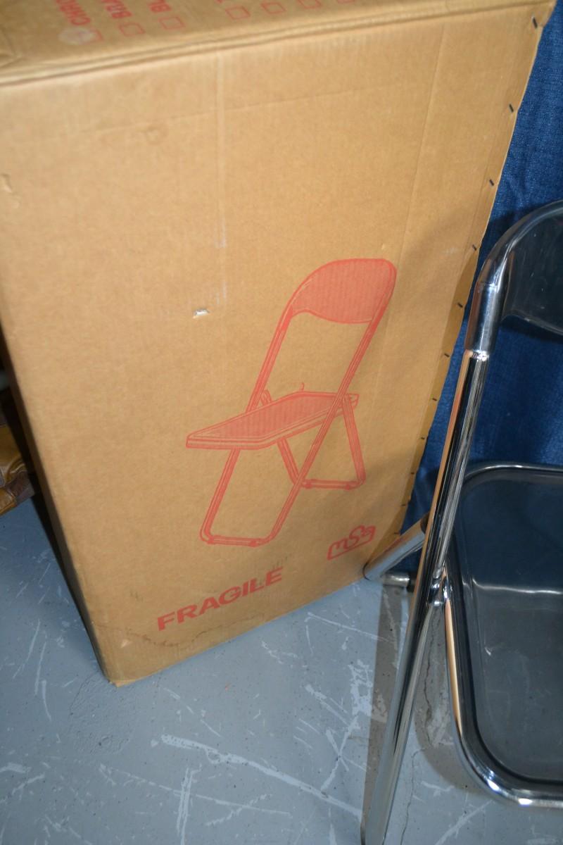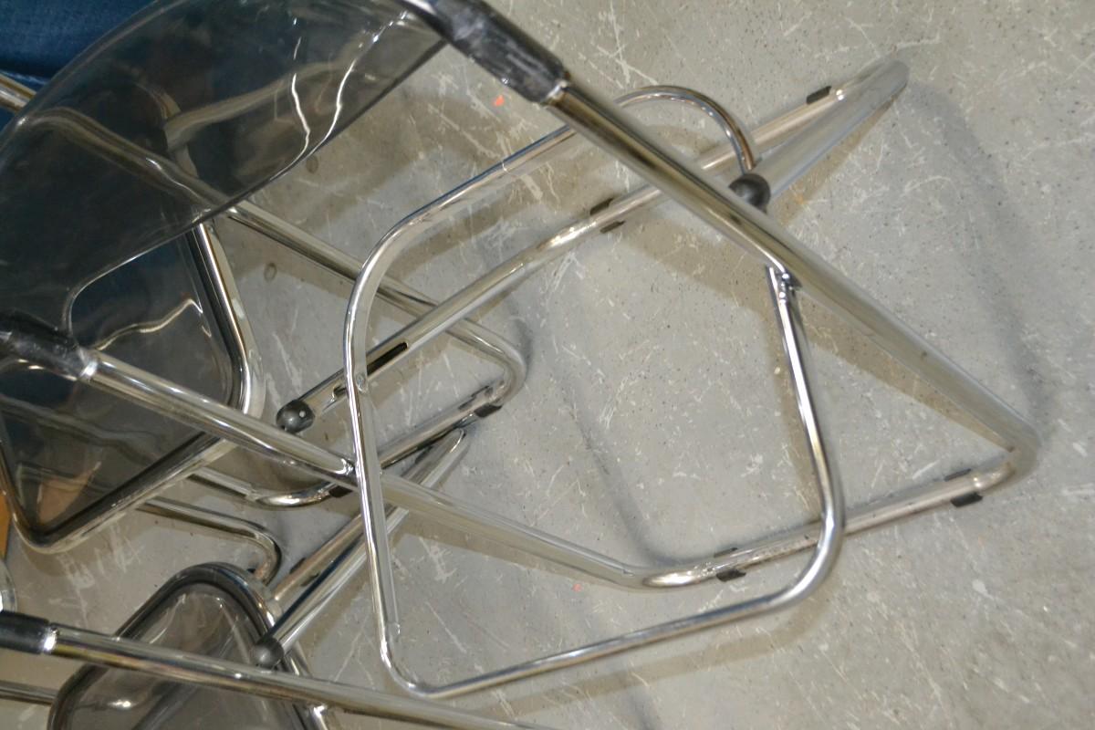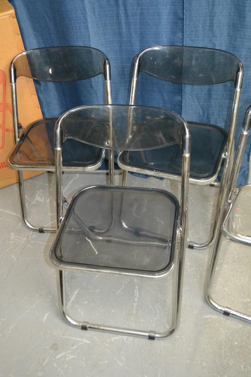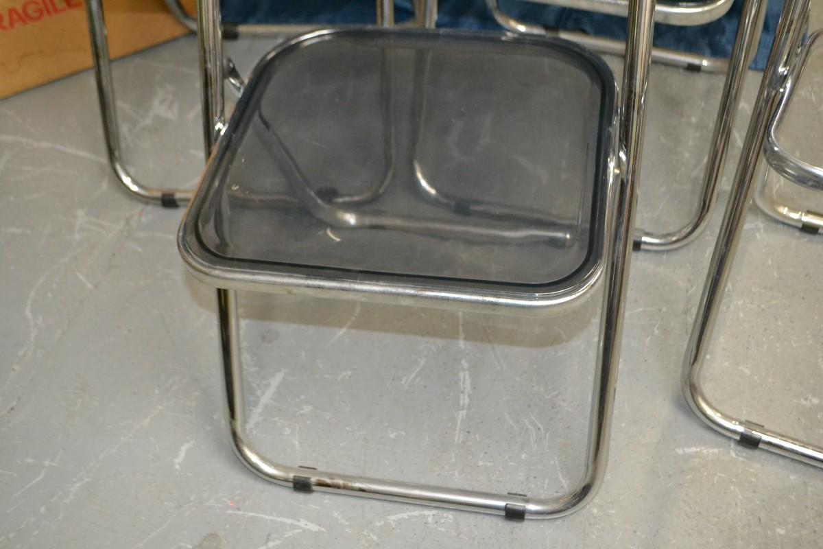 LOT 148 THREE ACRYLIC FOLDING CHAIRS AND ONE FRAME BY ALSTON QUALITY INDUSTRIES MADE IN ITALY