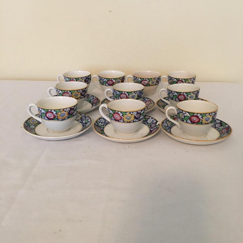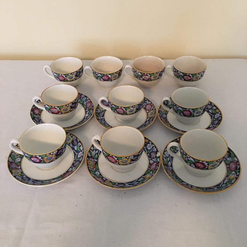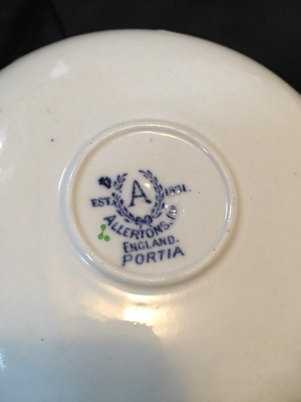 This dainty collection of Allertons Ltd. of England in the Portia pattern would look great on your tray for afternoon tea. Lot includes six saucers and ten cups. There are a few minor issues because of their age...four cups have crazing inside and one cup and saucer have chips, see pictures. Saucer measures 4.75”D.