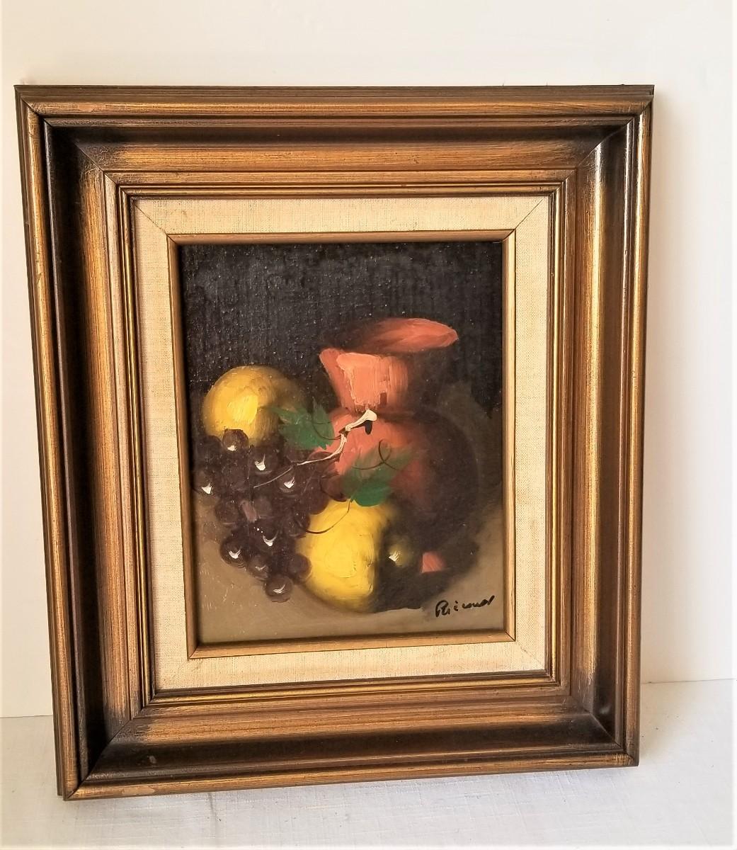 Decorative Oil painting - still life with fruit - dated 1976. Measures 13.25" x 15.25". Good condition.