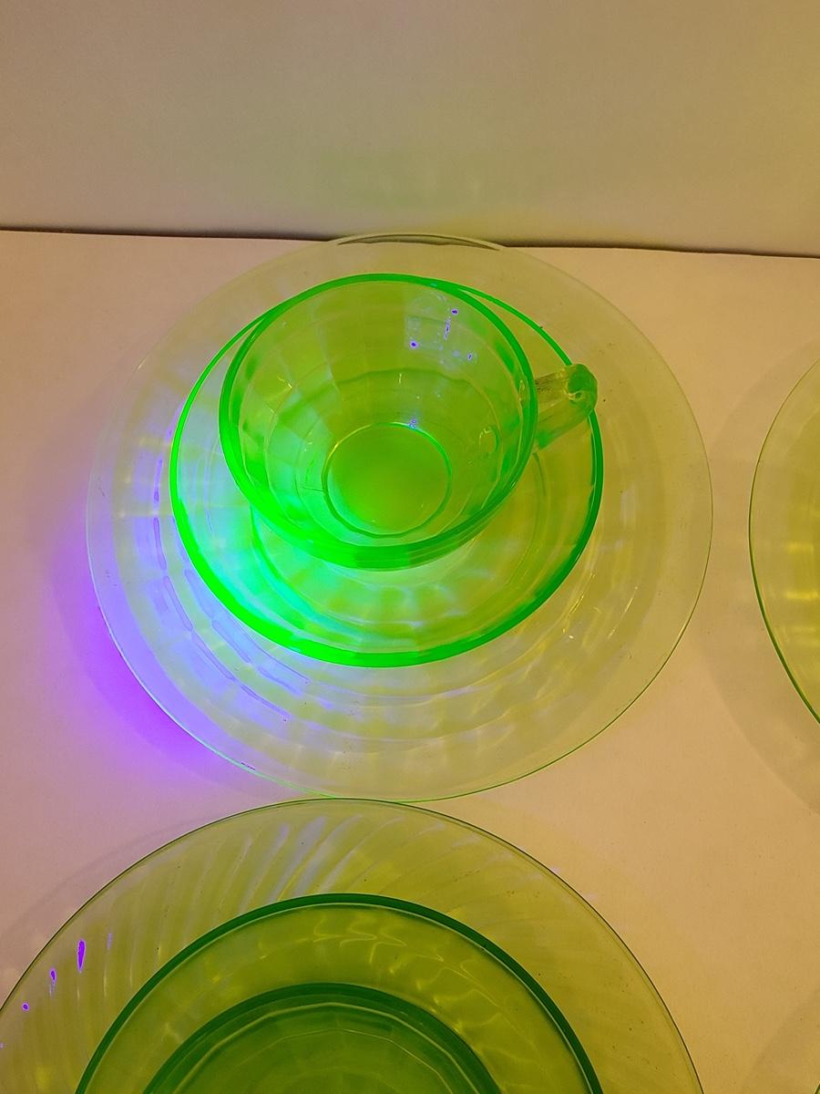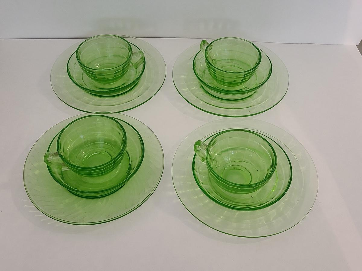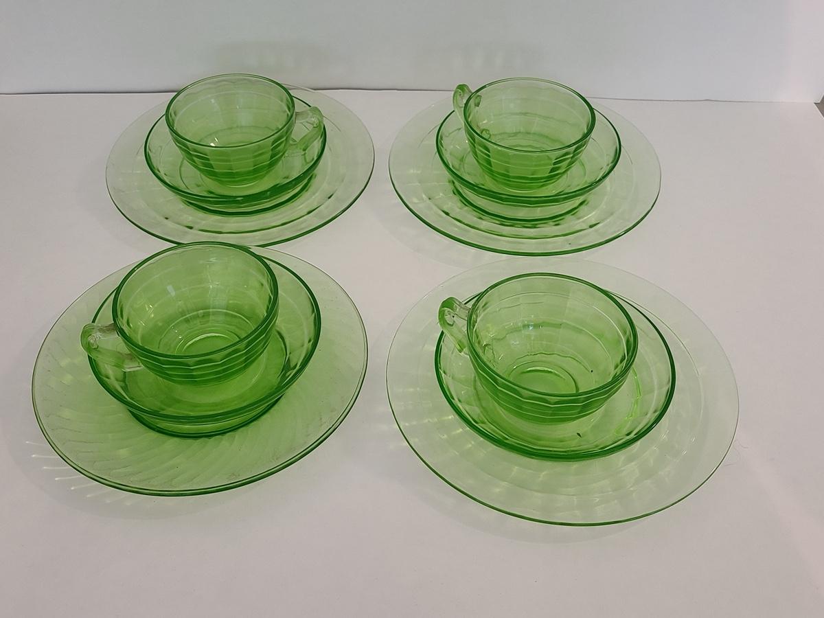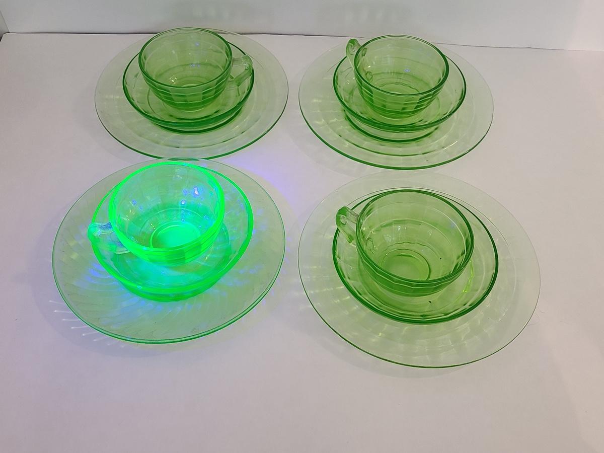 Lot 148: Four Place Settings Green Depression/Uranium Glass (Glows)