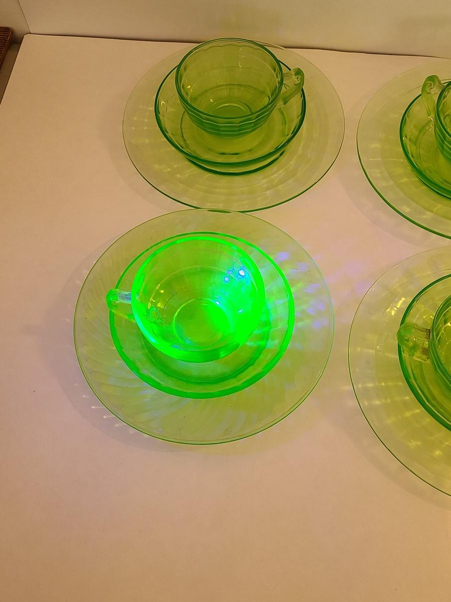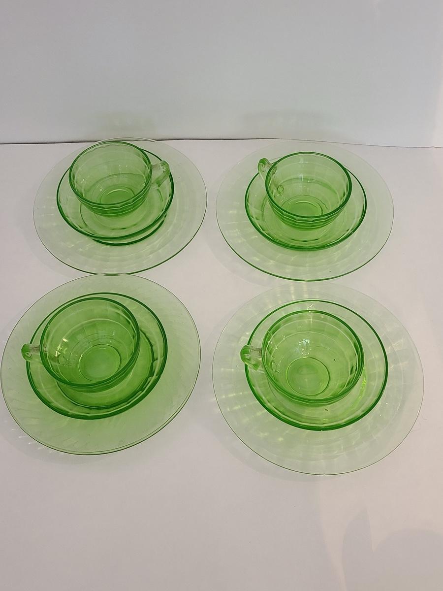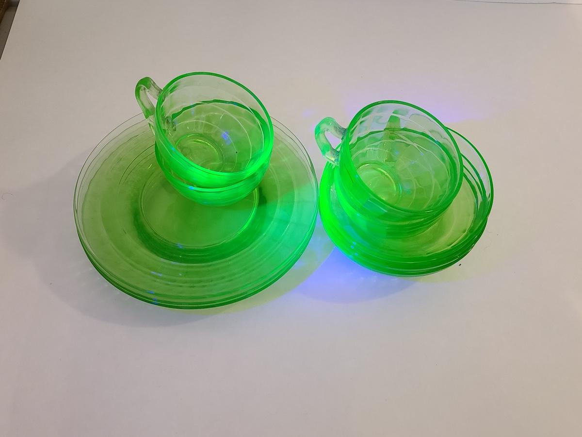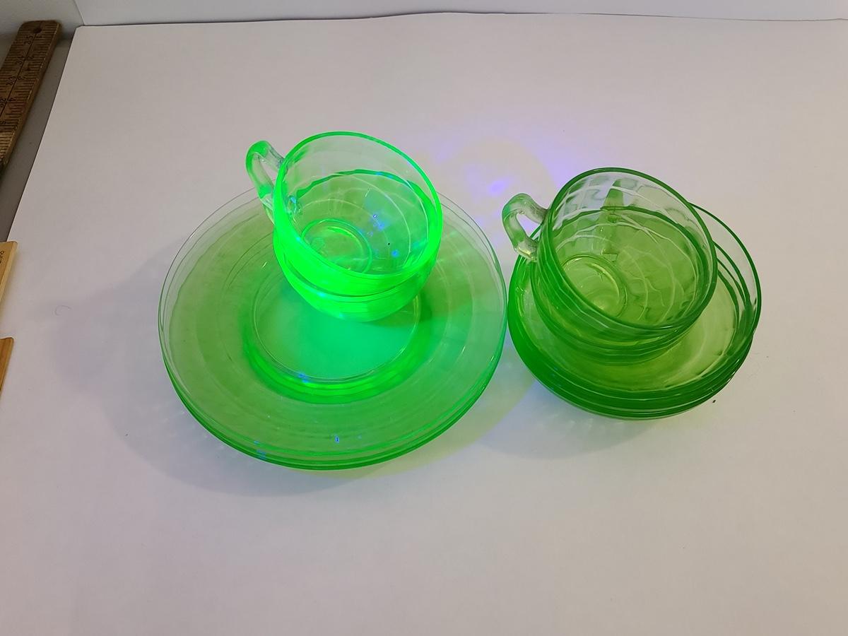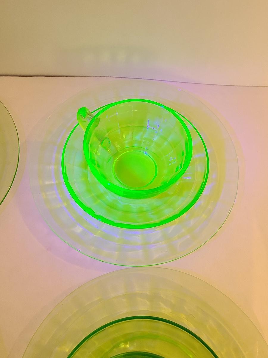 Lot 148: Four Place Settings Green Depression/Uranium Glass (Glows)