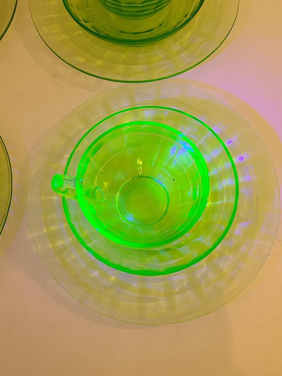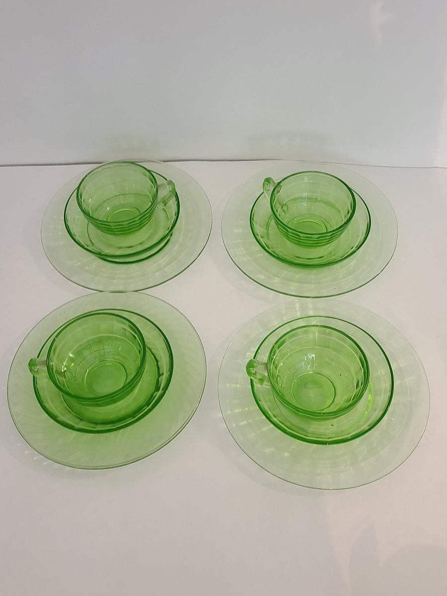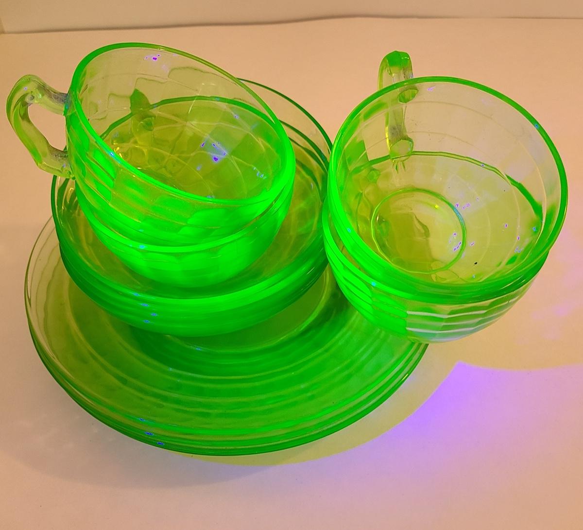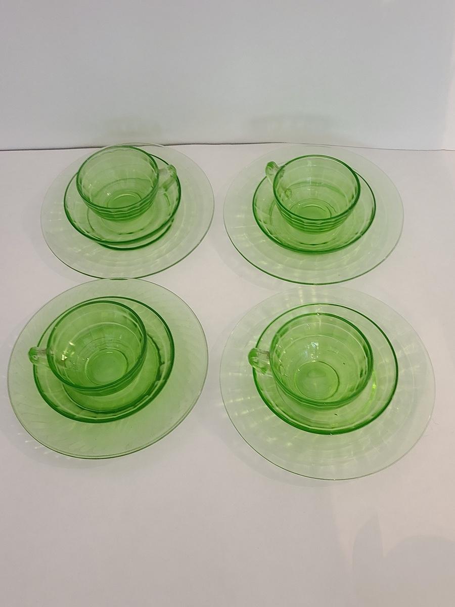 Lot 148: Four Place Settings Green Depression/Uranium Glass (Glows)