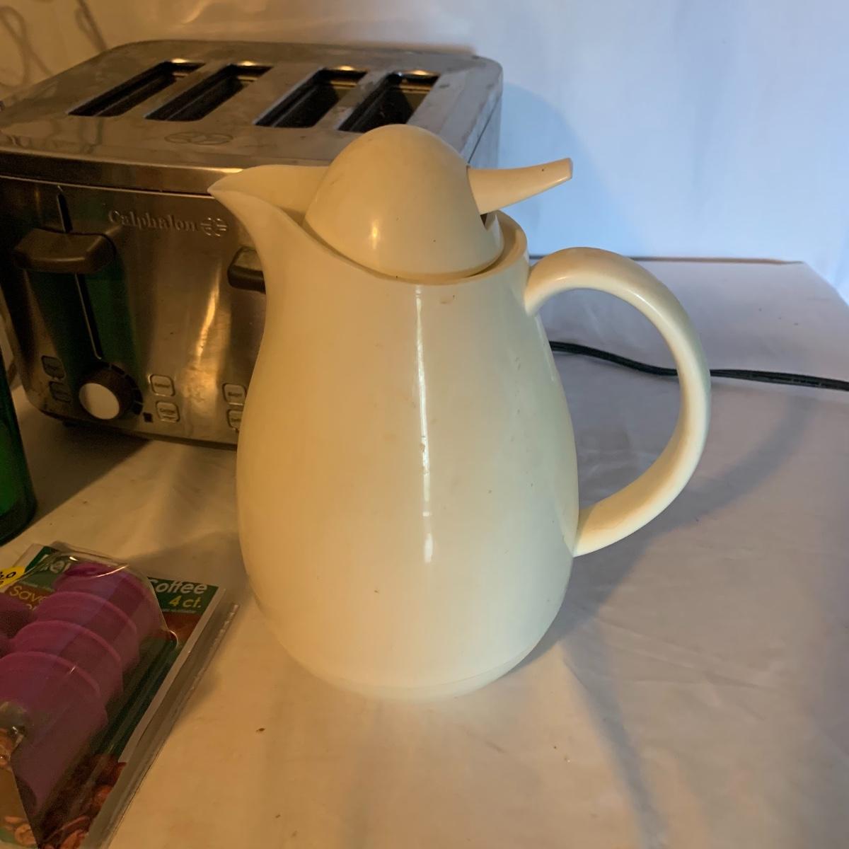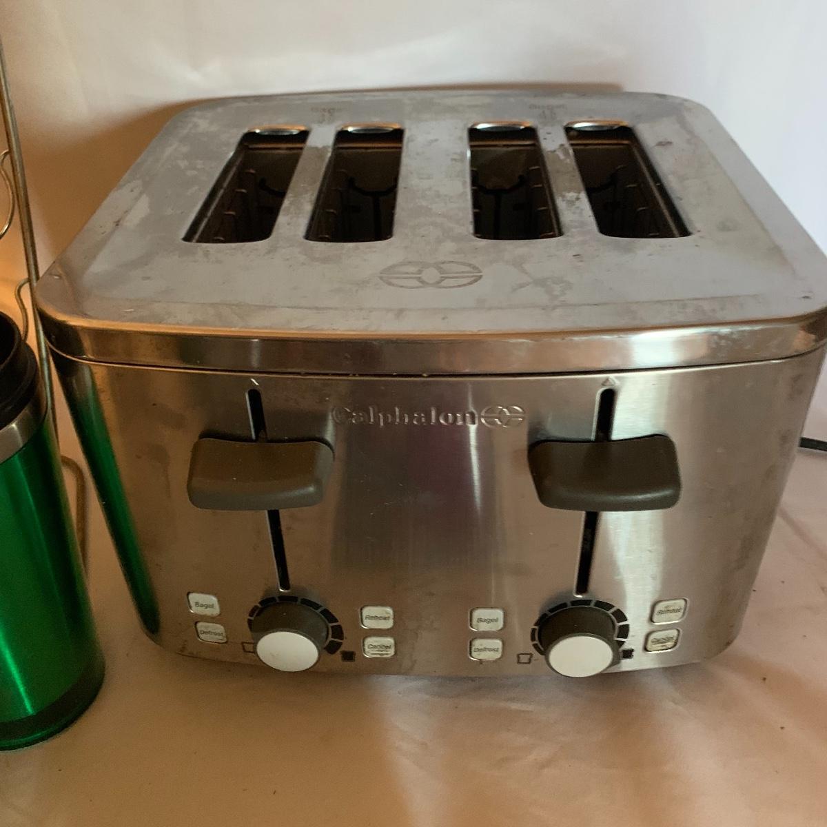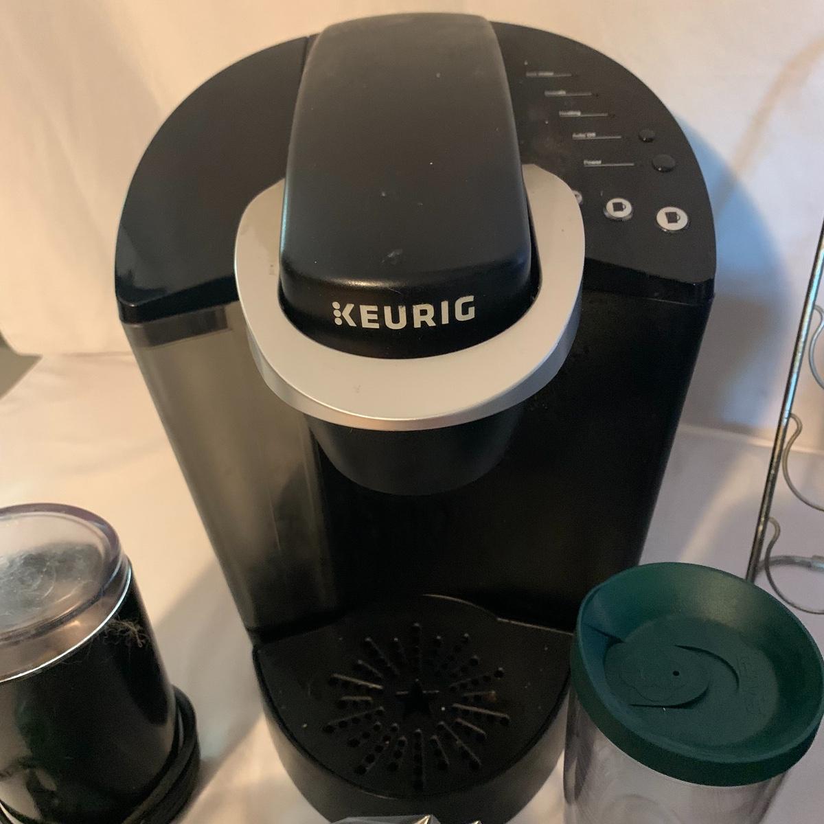 Who doesn’t LOVE a good cup of coffee? This Keurig model # K40 machine makes a delicious cup in seconds. This lot also includes a grinder, five travel mugs, a coffee pot, a rack for Keurig coffees, assorted coffee accessories, and a Calphalon toaster that is capable of toasting up to four things at once. Local pickup only.