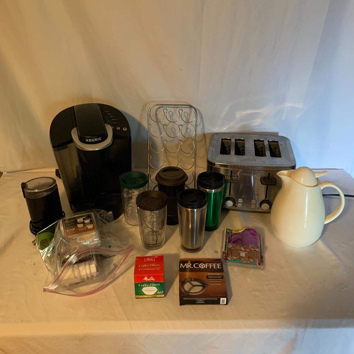 Lot 148 - Keurig Coffee Machine, Toaster, & Coffee Suppies