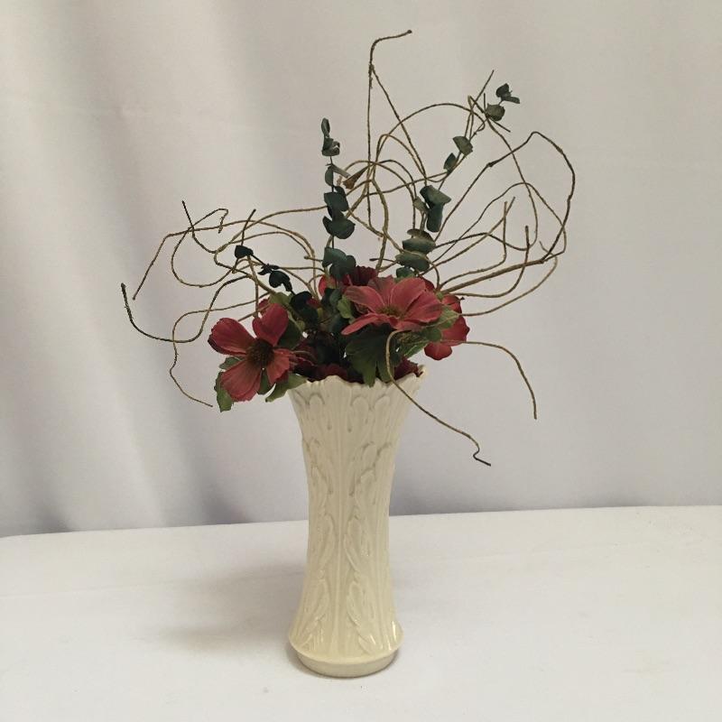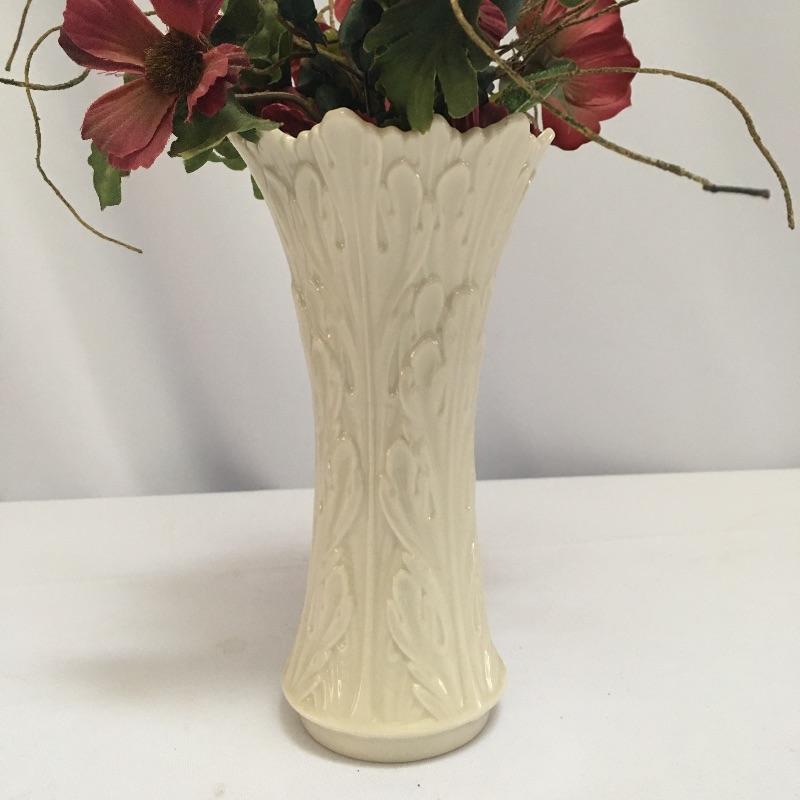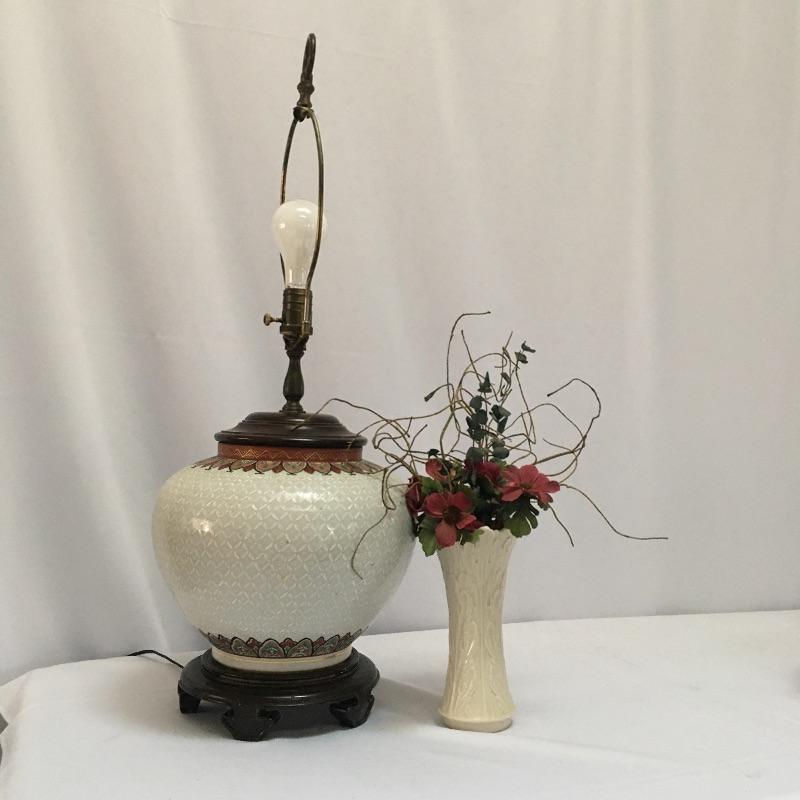 Lenox vase with faux flowers and a lamp with unique design on base. Light up the room with this lovely lamp and Lenox vase. Lamp worked when tested.