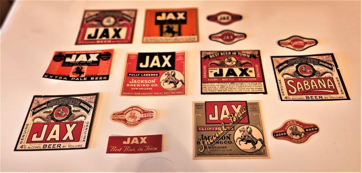 Lot of 14 vintage unused vintage beer labels - no duplications. JAX, Sabana