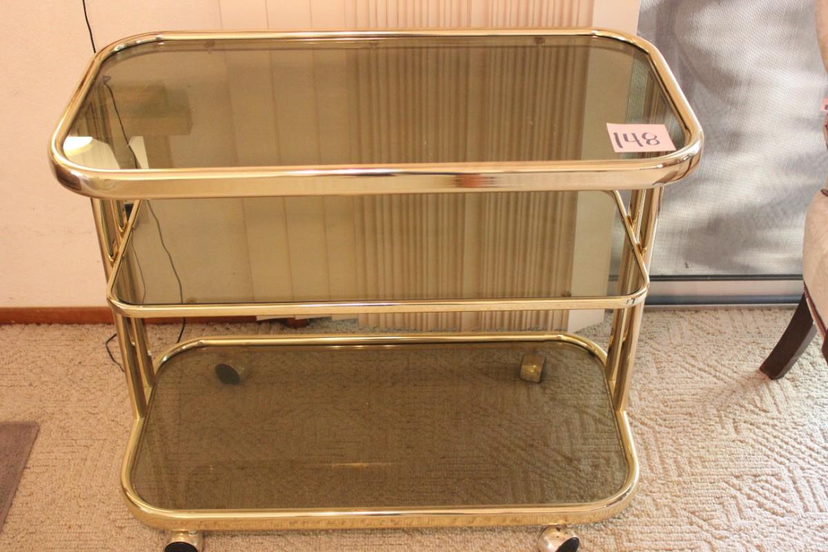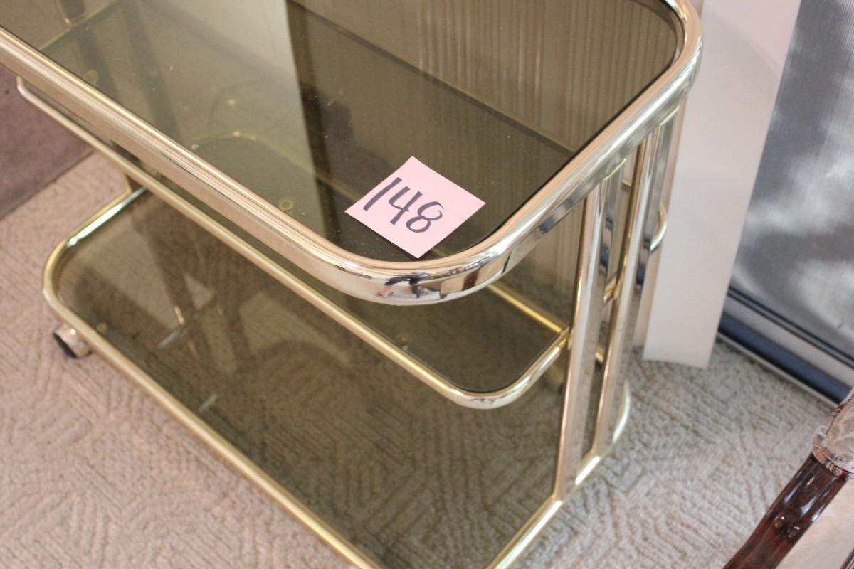 Lot 148 Mid Century Brass Rolling Bar Cart