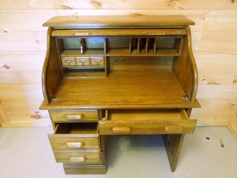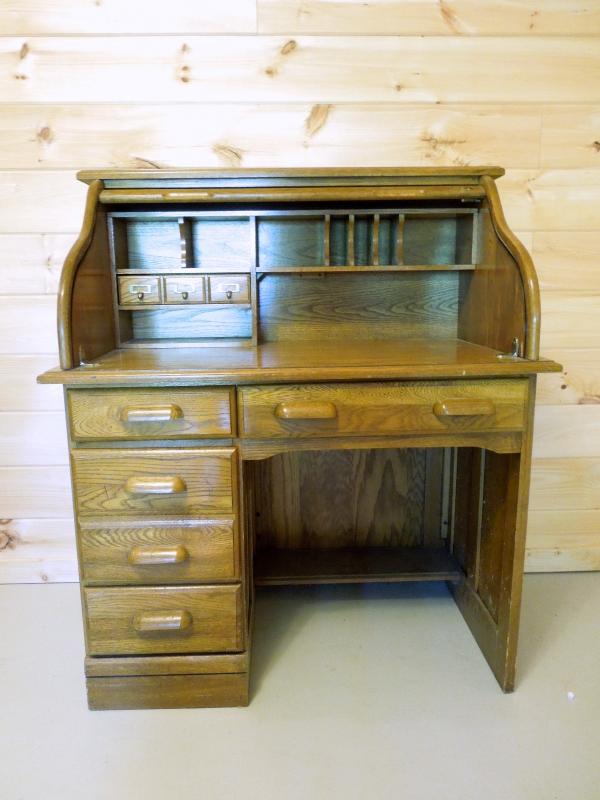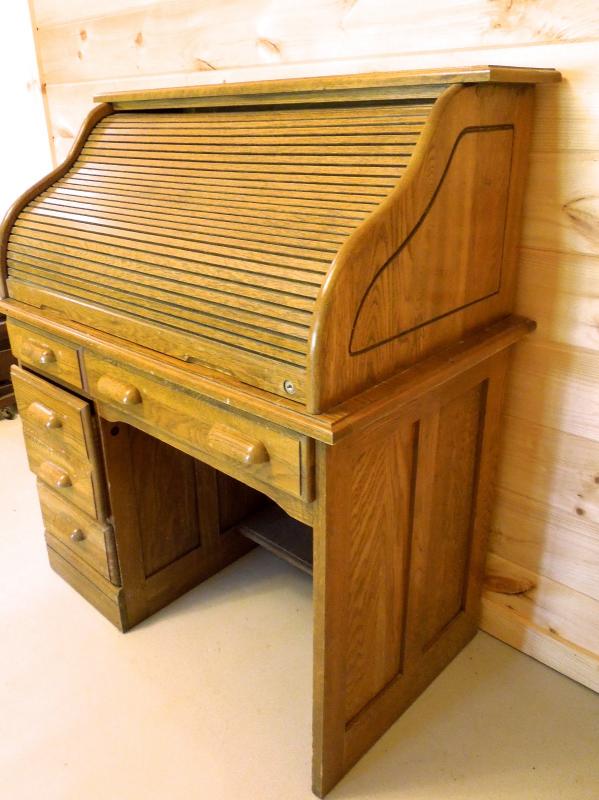 Lot 148: Reproduction 4 Drawer Rolltop Desk with Dividers