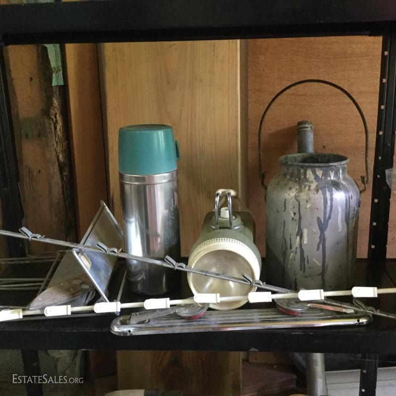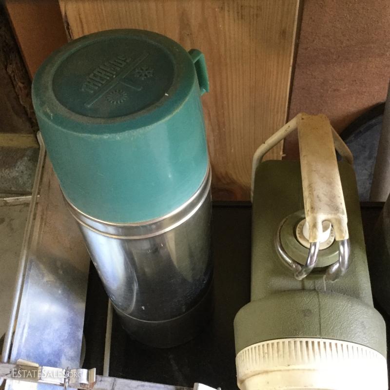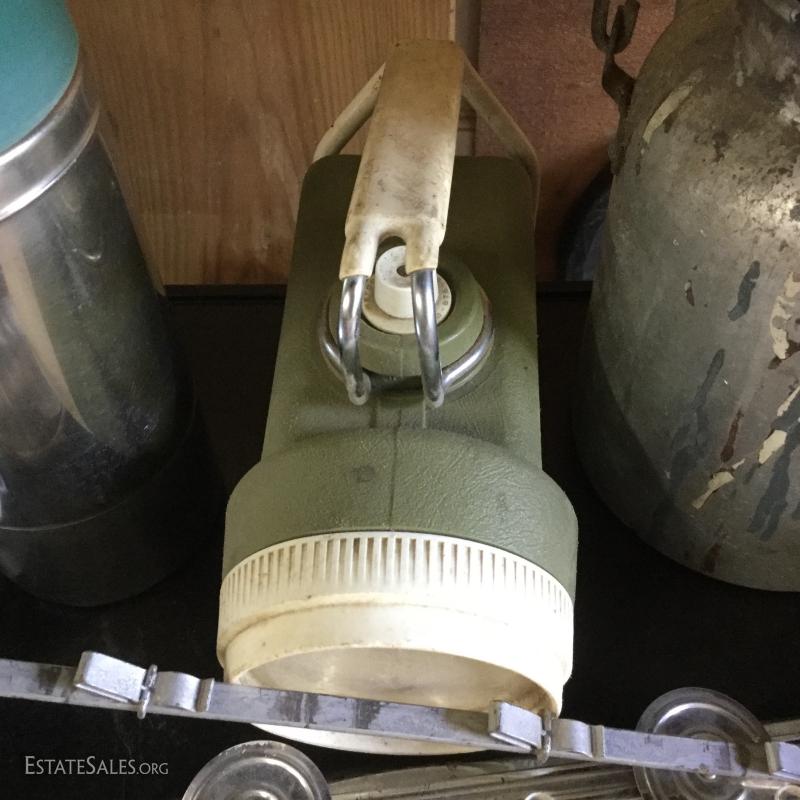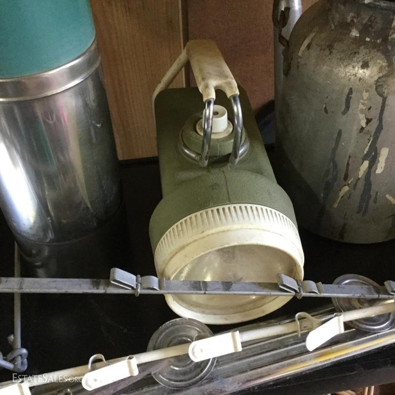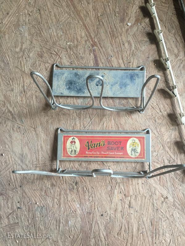 2 old store chip display clips, 2 boot savers, one with "Van's Boot Saver" sign on it., Old Rayovac flashlight (cannot verify if it works) and a stainless steel Thermos container. Small aluminum canister with handle (8"tall), retro bottle opener, and metal wall mount paper towel holder. This lot is available for shipping or local pick up in Hendersonville, NC.