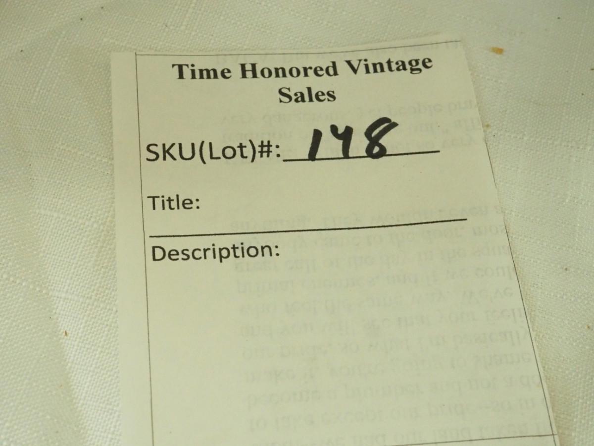 Time Honored Vintage Spring Sale starts April 11, 2022 Ends 4/28 Pay 4/29 Pick up Sat.April 30