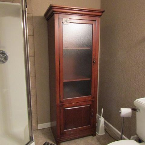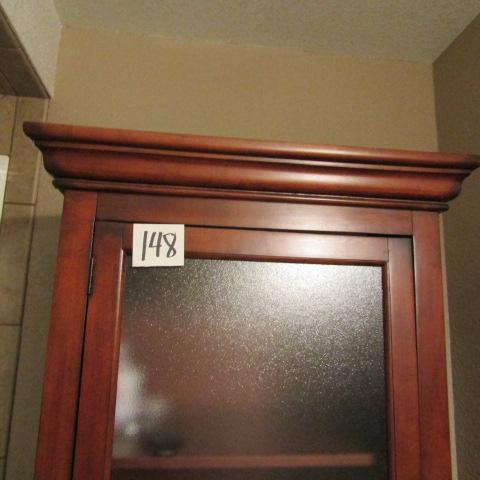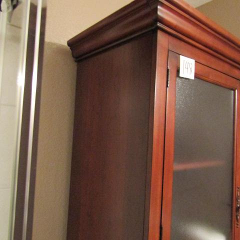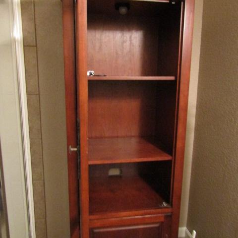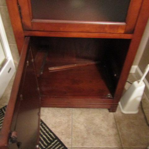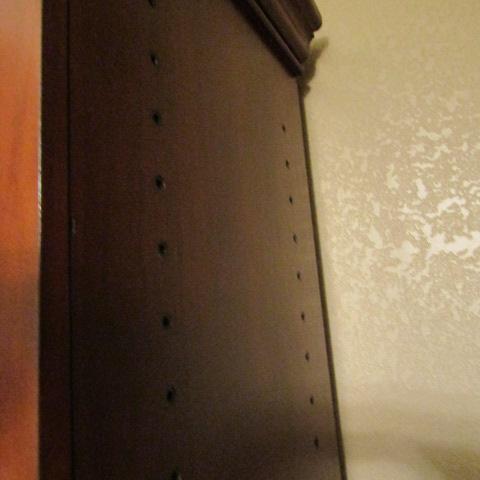 THIS WAS ORIGINALLY A SIDE PIECE FOR AN ENTERTAINMENT CENTER SO THERE ARE PEG HOLES ON THE SIDE