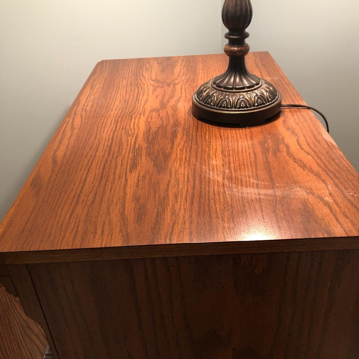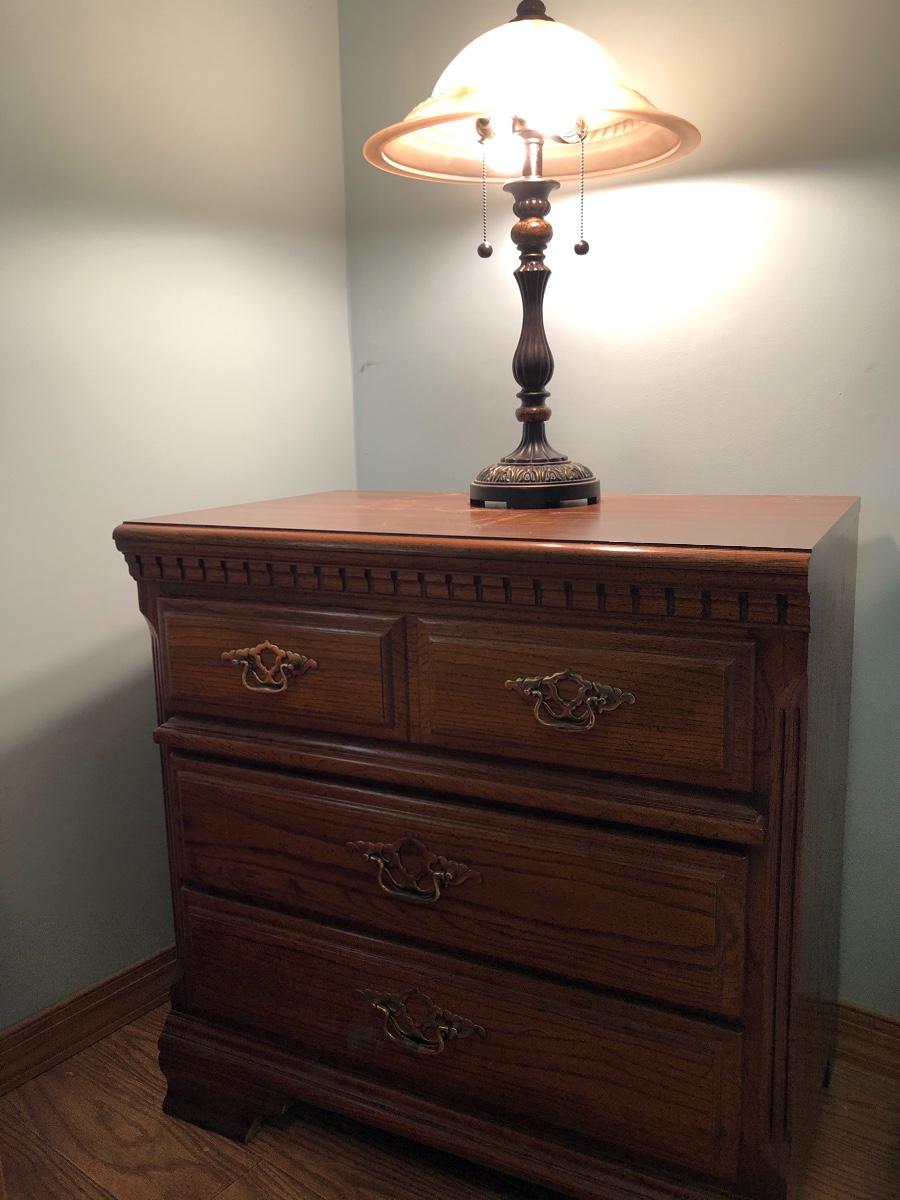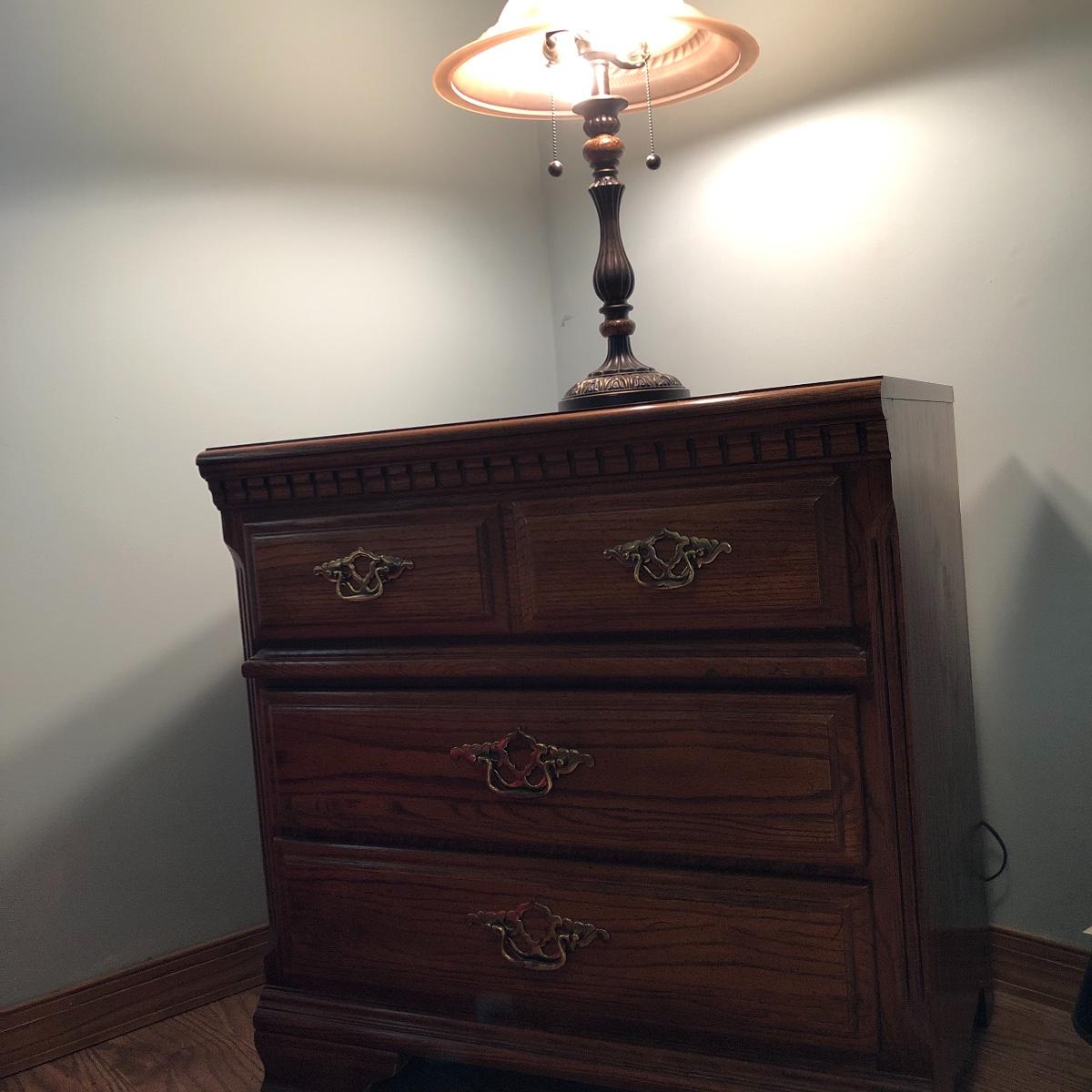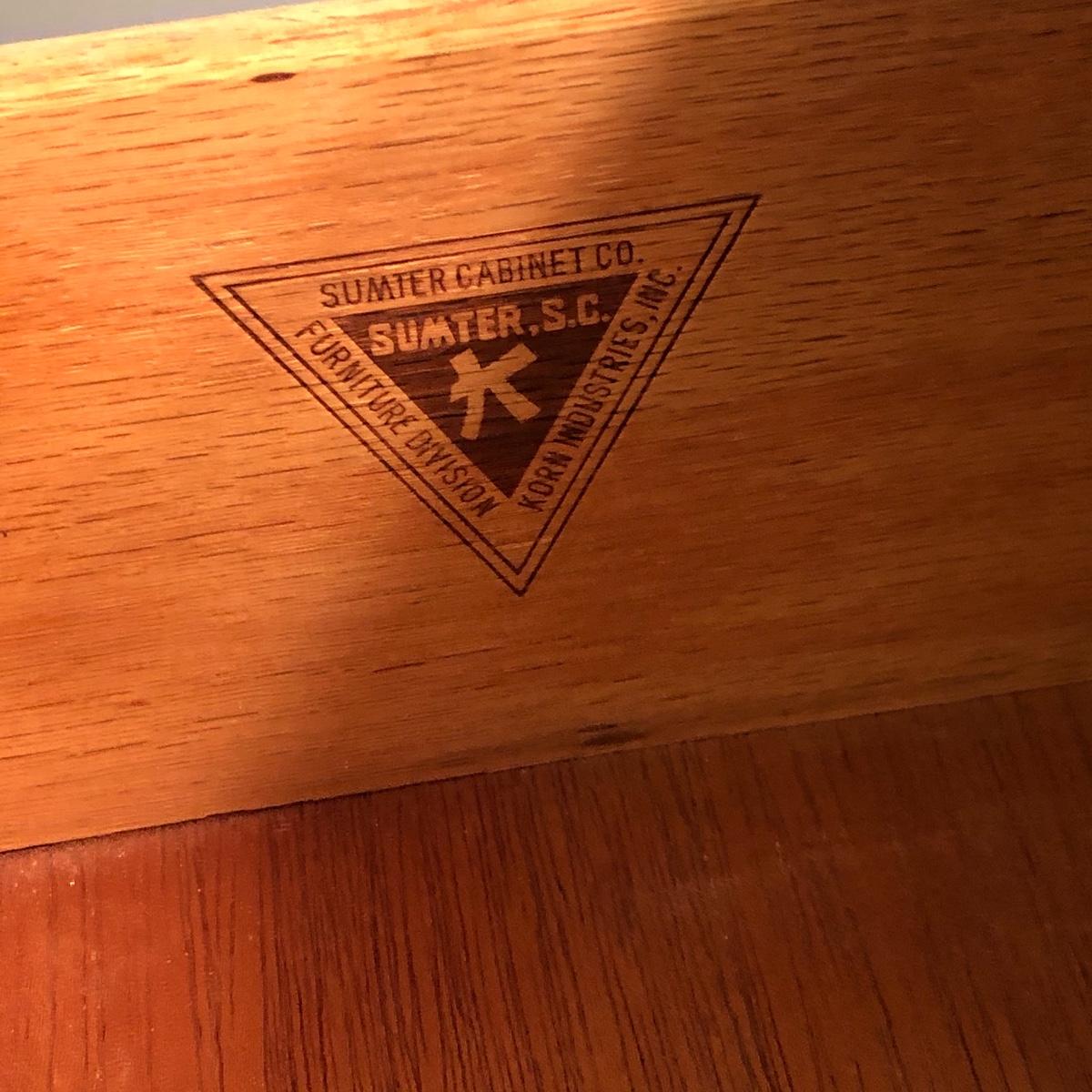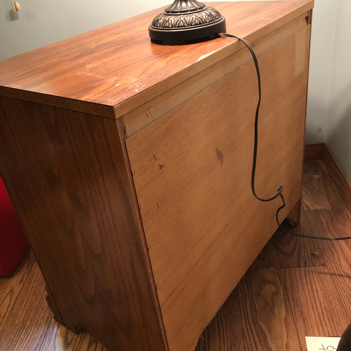 This lot includes a three drawer dresser and lamp. The dresser is from the “Sumter Cabinet Co.” The top drawer is one drawer. The dimensions are 30.5” x 30” x 19”.