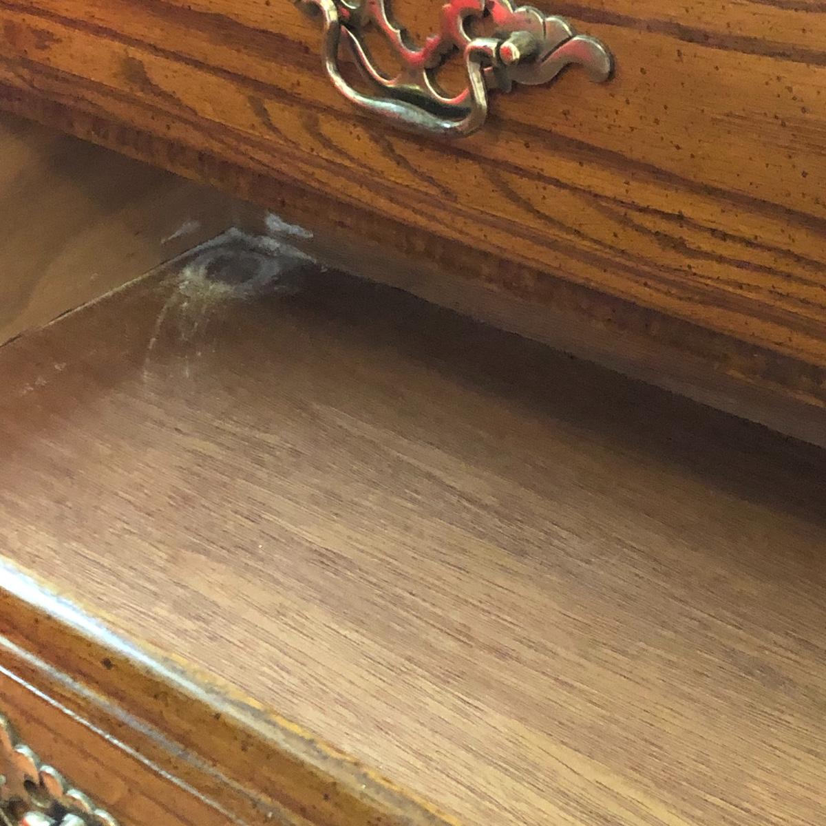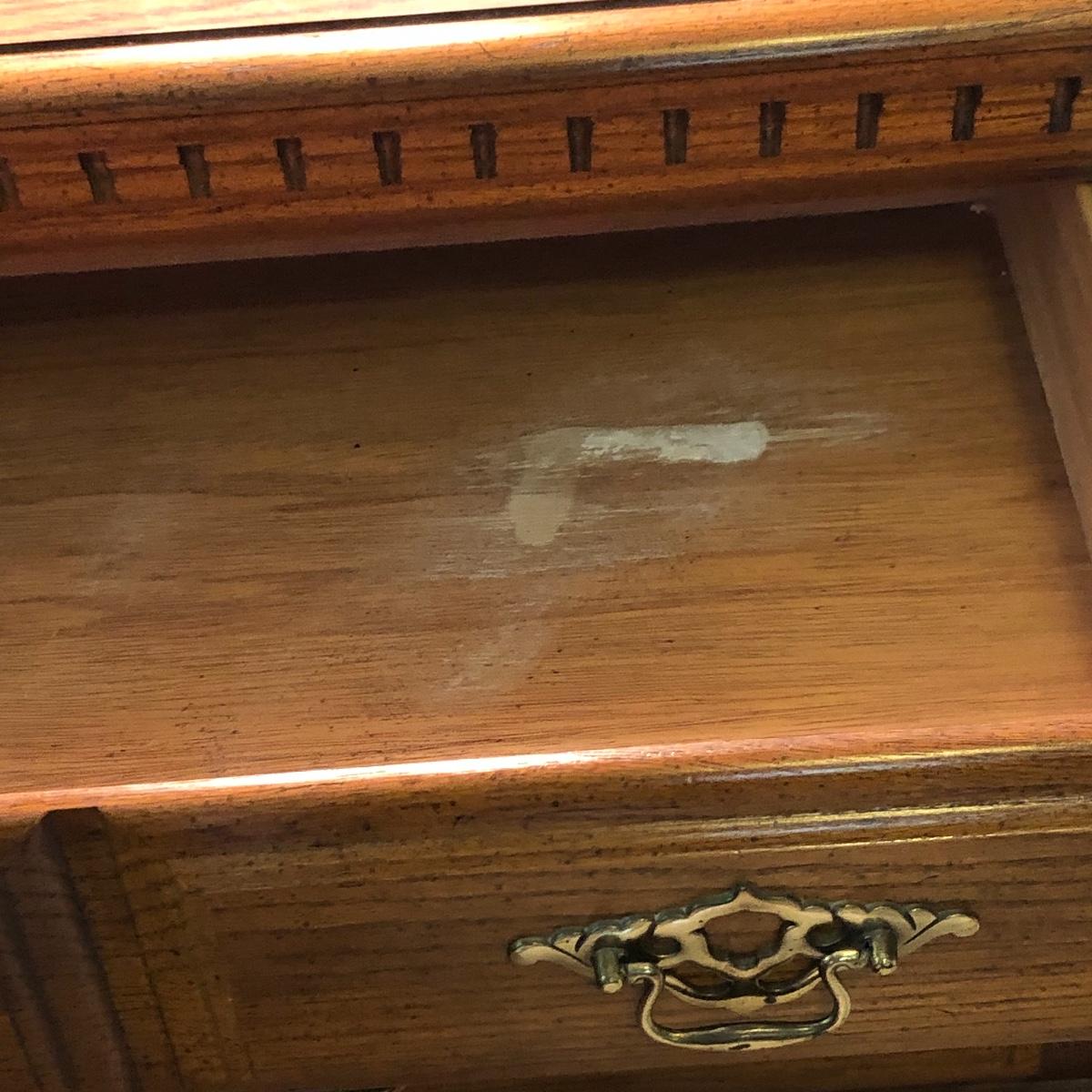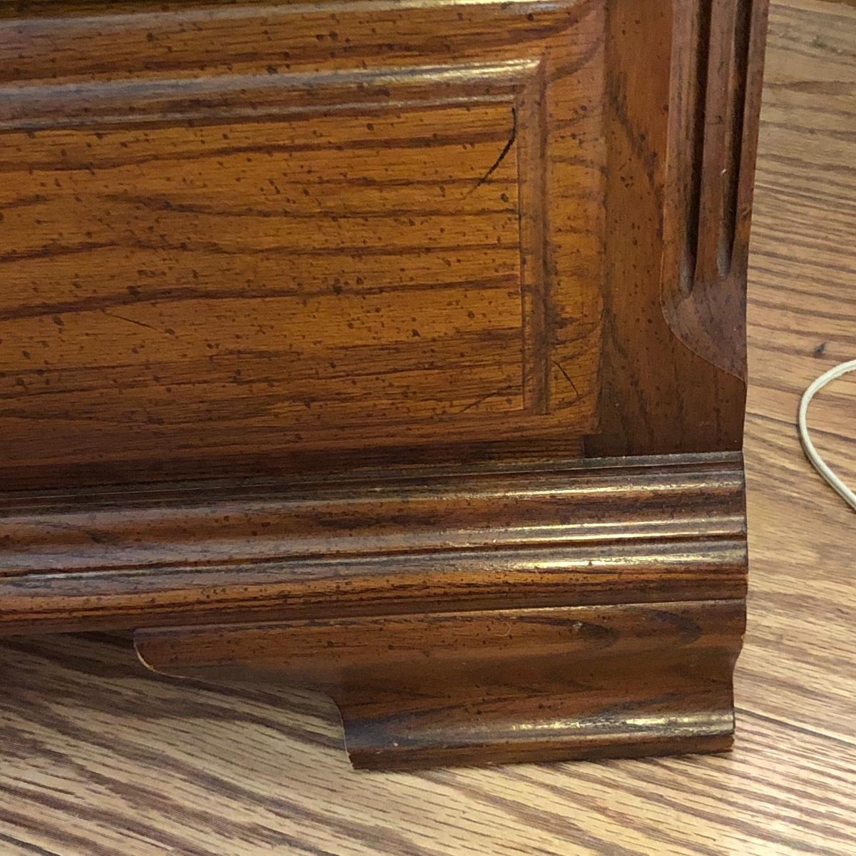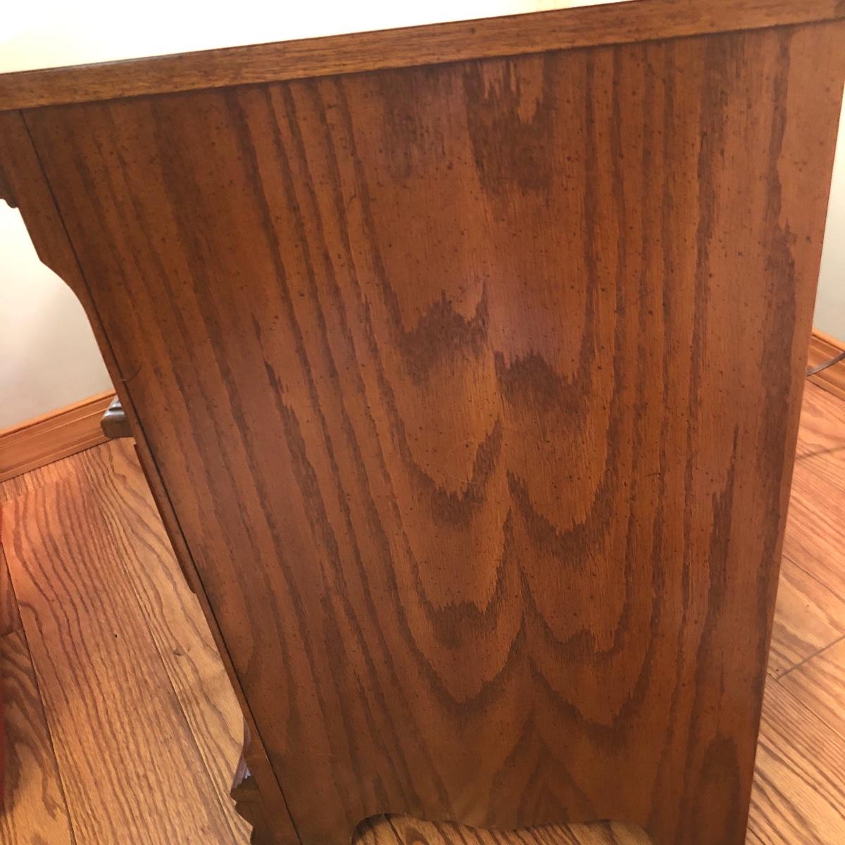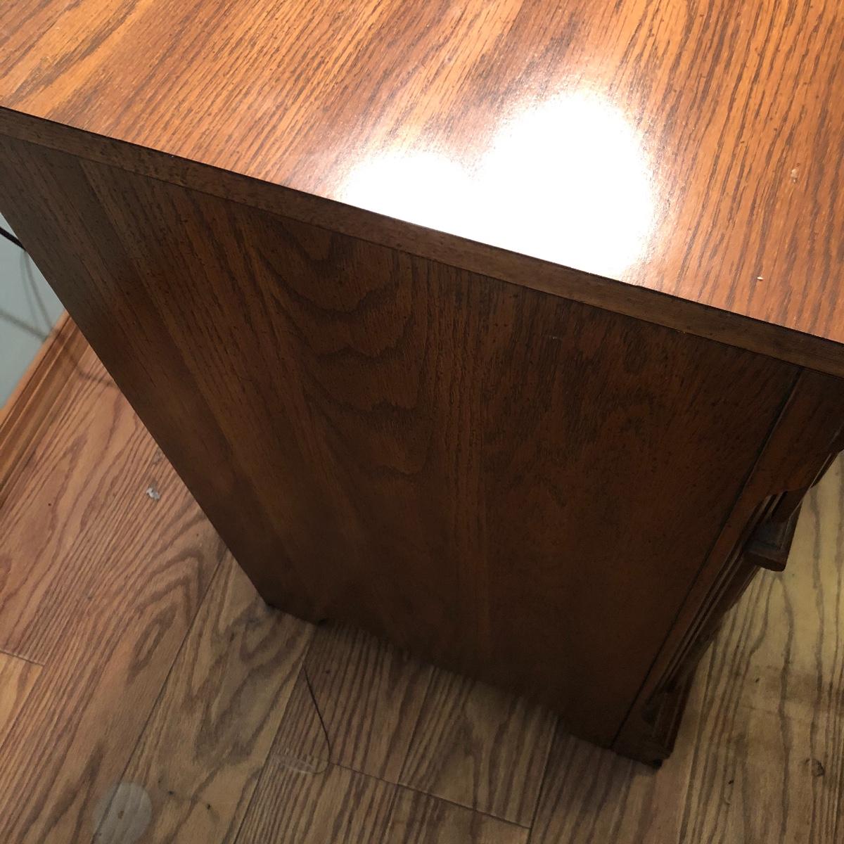This lot includes a three drawer dresser and lamp. The dresser is from the “Sumter Cabinet Co.” The top drawer is one drawer. The dimensions are 30.5” x 30” x 19”.