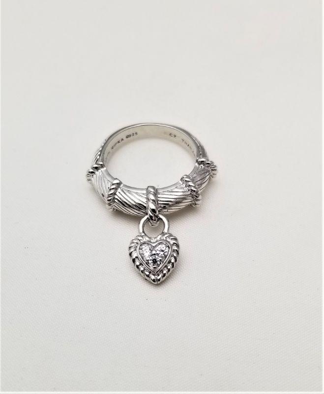 Pretty Judith Ripka Ring - sterling silver/CZ ring - size 6 - Heart motif. No box.