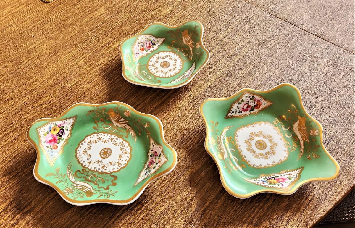 Three pieces of transferware Victorian china - applied decoration, no maker noted. Largest is 11" across, next is 10", smallest is 9". Good vintage condition.