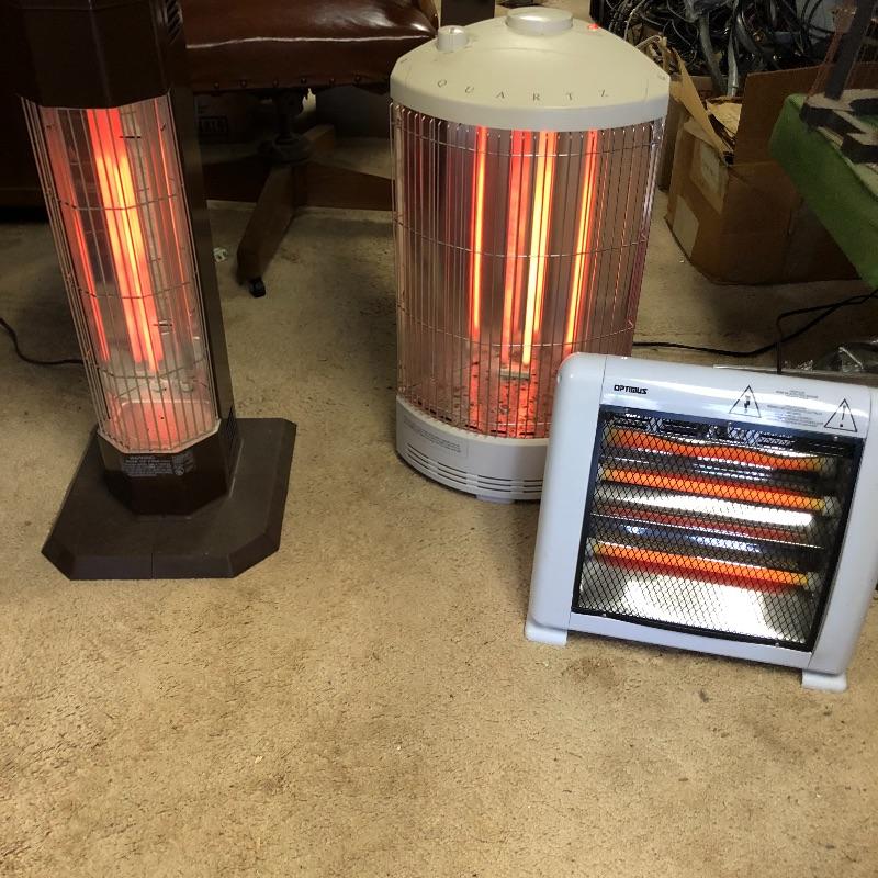 As you will see from the images, all three heaters work and all heat up very quickly and throw off a good amount of heat. The tall white heater is a Marvin, tall brown heater a Lakewood and the smallest one is an Optimus.