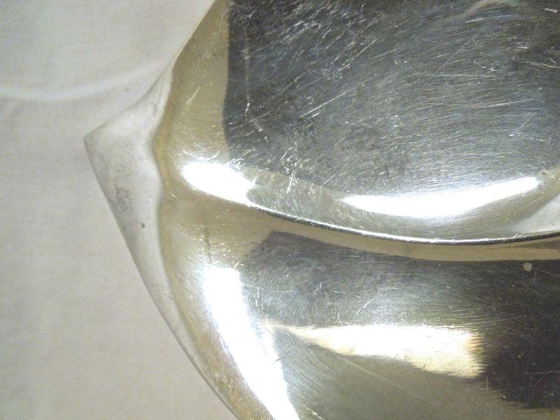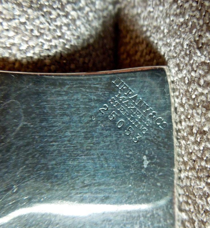 6" sterling silver candy tray marked "Tiffany and Co. Makers Sterling. 25053". Has some surface scratches, but no dents. comes with tarnish proof bag marked Macy's Silver Shop. Weighs 1.2 oz or 34 grams.