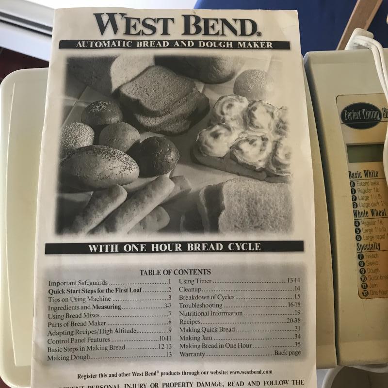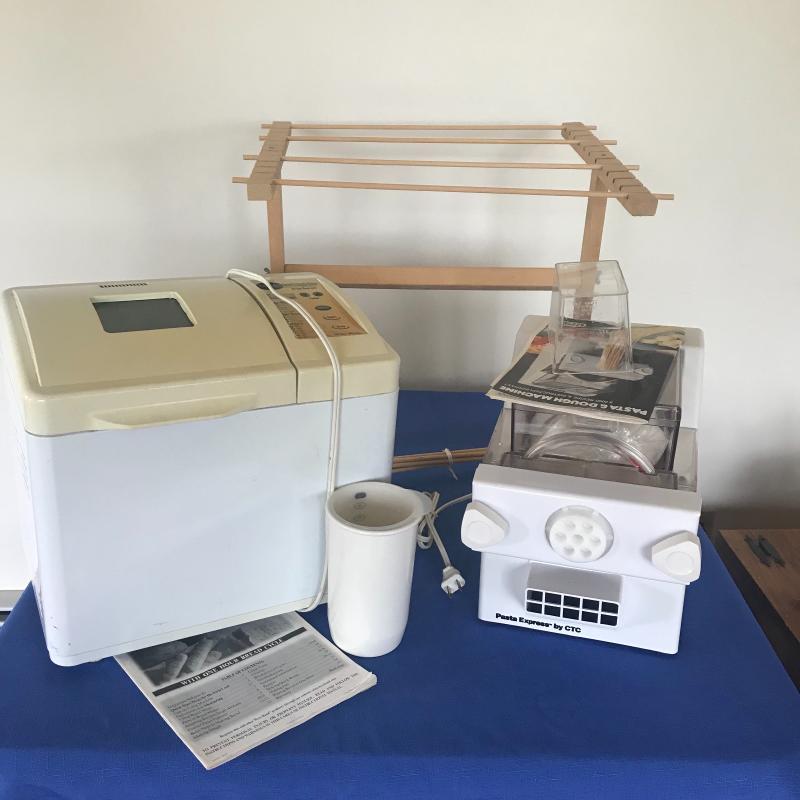 Westbend bread and dough maker has instruction Manual . Pasta Express by CTC has different size attachments for pasta types. Lot also includes a wooden pasta drying rack that folds up nicely. Local pick up only.
