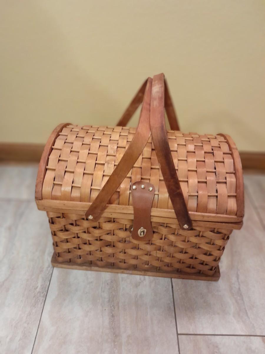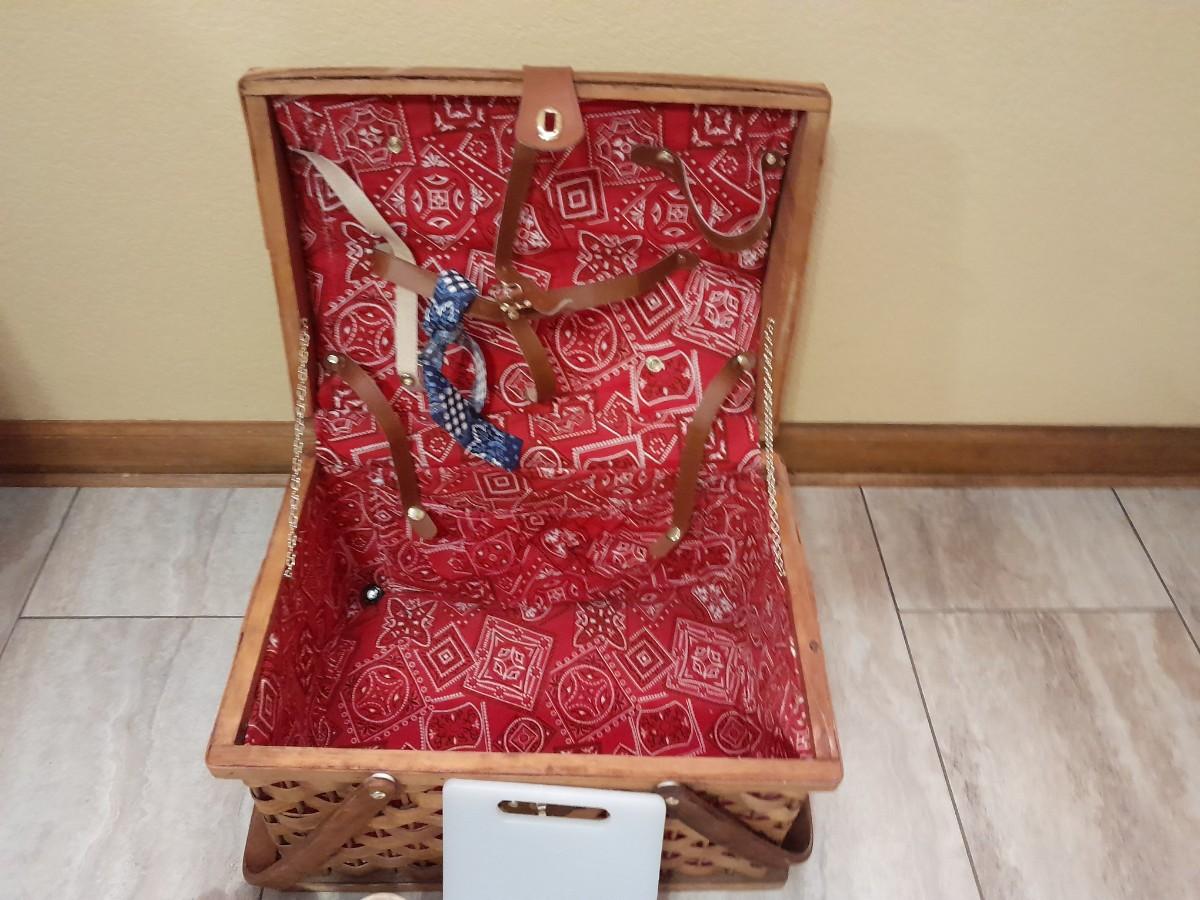 LOT 148 WICKER PICNIC BASKET WITH DISHES AND TUPPERWARE SALT & PEPPER