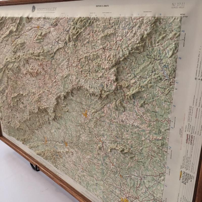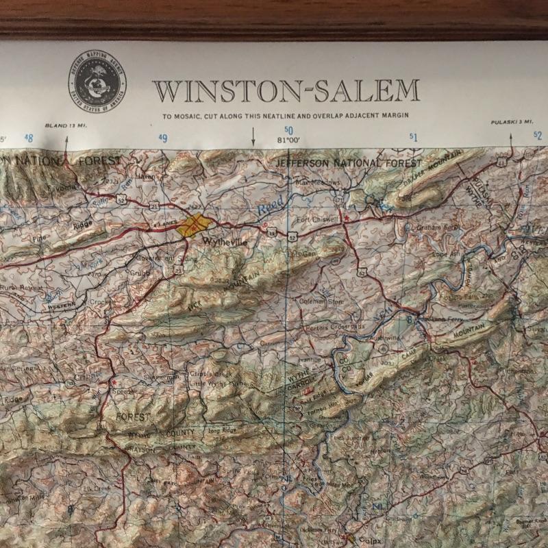 Winston Salem framed topography map. A great way to visualize the mountains of WNC.