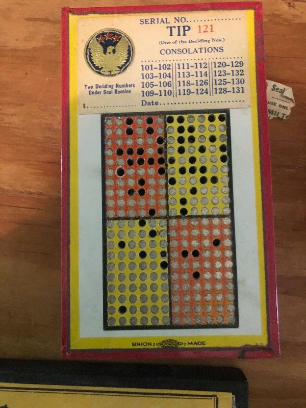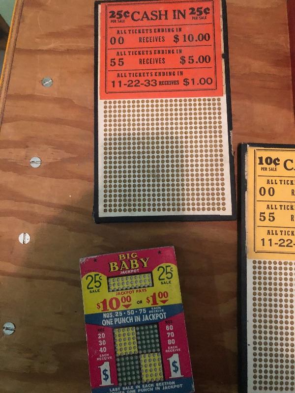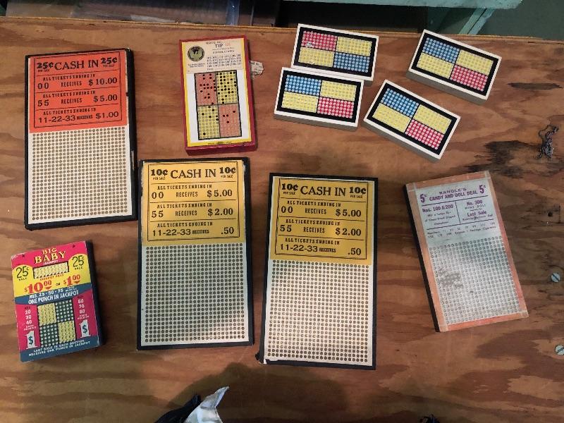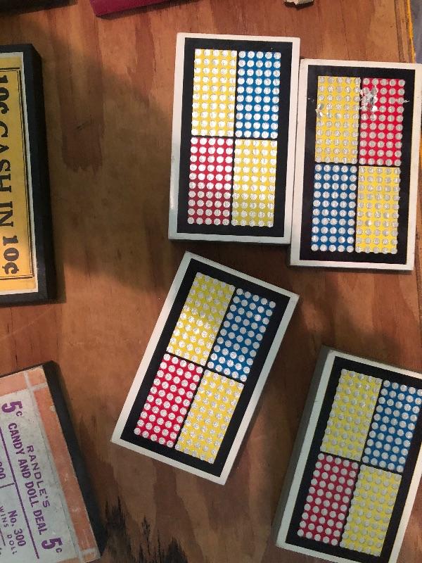 10 boards: .25 cash in, 2 - .10 cash in, big baby, 4 mini boards blank, Tip, candy and doll deal : Vintage used condition