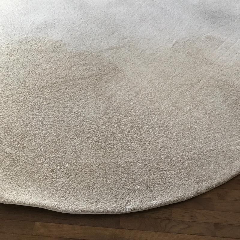 Perfect white round rug in 10 foot diameter. Stain resistant so no worries about stains. Comes with thick rug pad cut to size. Low pile. Great condition. No shipping. Local pick up only in Flat Rock, NC.