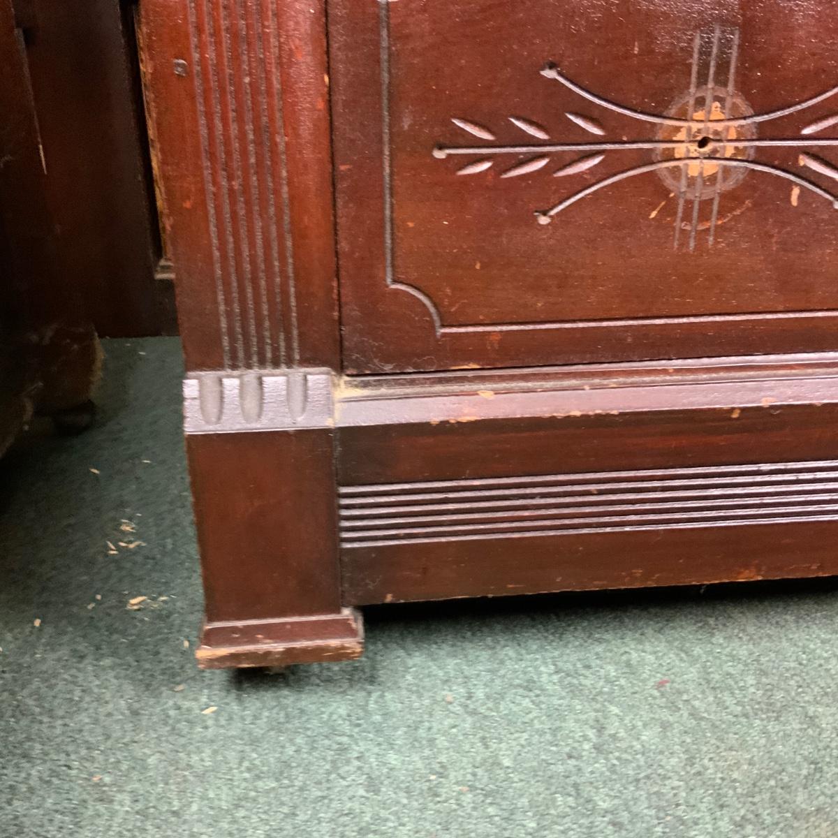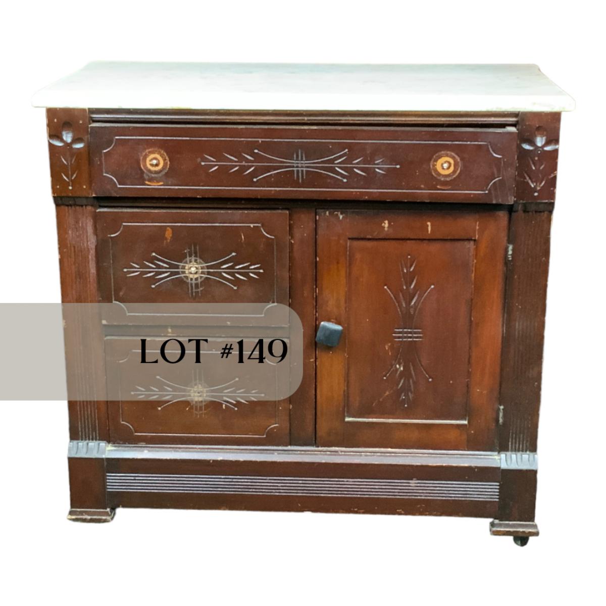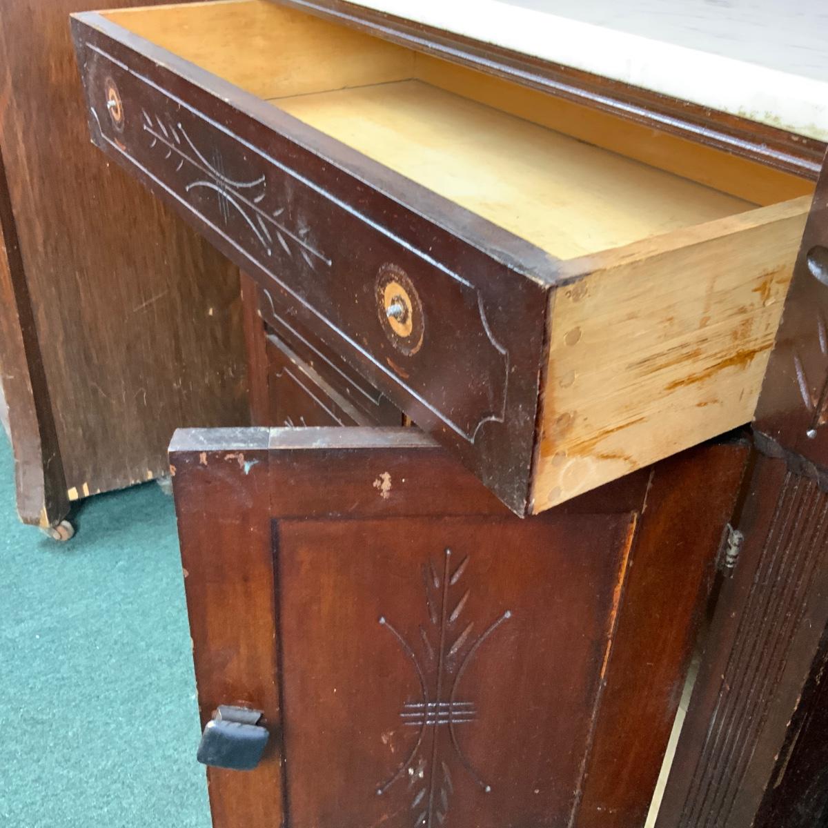 Marble-Top Commode. Lovely pin and cove construction on the drawers. //::\\ Please see photos for details and condition. No attempt has been made to hide any imperfections. All items listed in this auction are warehouse items, and need to be cleaned. A majority of the items need restoration as well. All items are sold AS IS and WITHOUT GUARANTEE. If you are uncertain about an item, DO NOT BID. Due to the nature of this online auction in-person inspection is HIGHLY recommended. All Sales are FINAL. Pick Up Times are FIRM. Please confirm with your own schedule that you can pick up in the scheduled times listed in the Terms and Conditions. Any questions please message the auctioneer. DO NOT Contact The Harp Gallery.