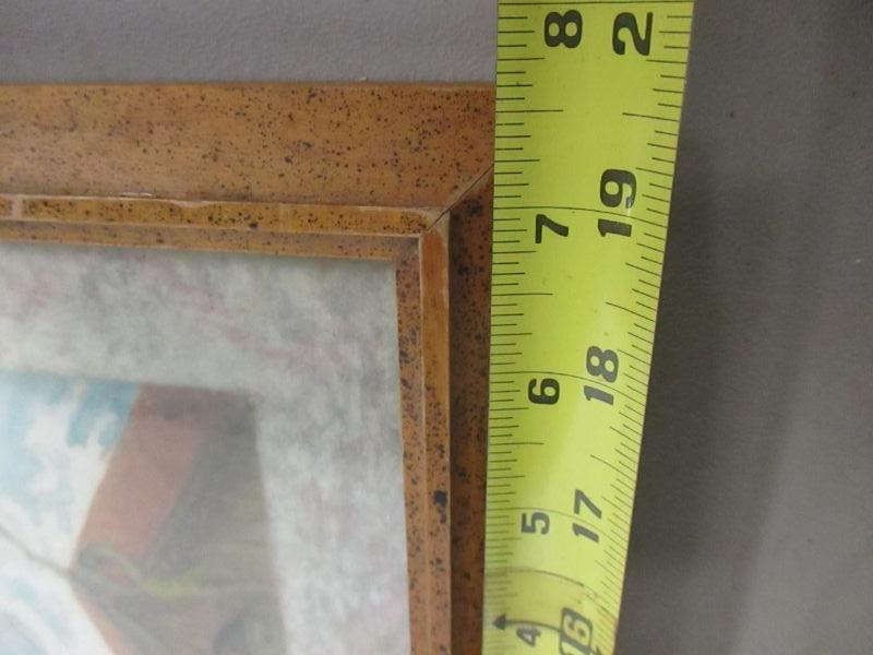 Please see pictures for condition frame does have some damage and picture may need cleaning - may have foxing - Size approx 19 1/2 x 16