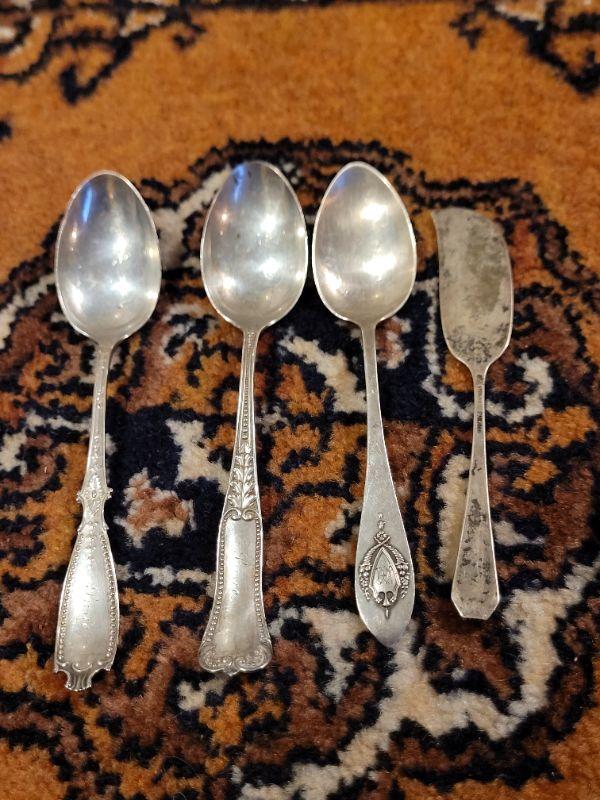Lot #149: (4) Antique/Vintage Sterling Silver Spoons and Jam Knife