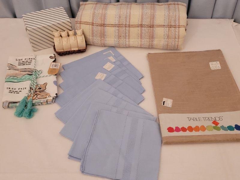 Lot 149: New & Vintage Table Lines, Kitchen Towels and Kitty Napkin Rings