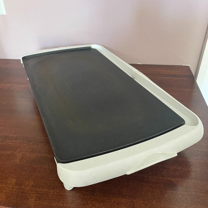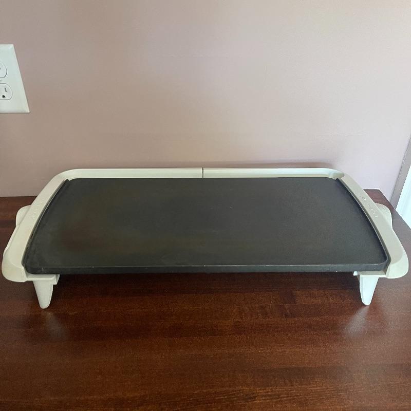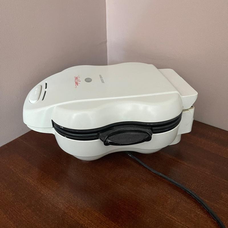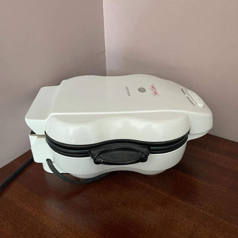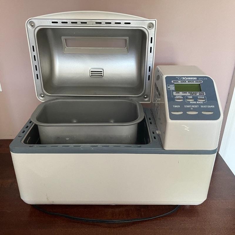 Various appliances including a high end Waring Pro waffle maker, a bread maker, a blender, a small crockpot, and more. The bread maker is a Zojirushi BBCC-X20 and it comes with two recipe books. The blender is a Kitchen Aid, the shell baker is a Black & Decker, the waffle maker is a Waring, and the crockpot is a Crock-Ette. The griddle does not have a power chord. All items powered on when plugged in.