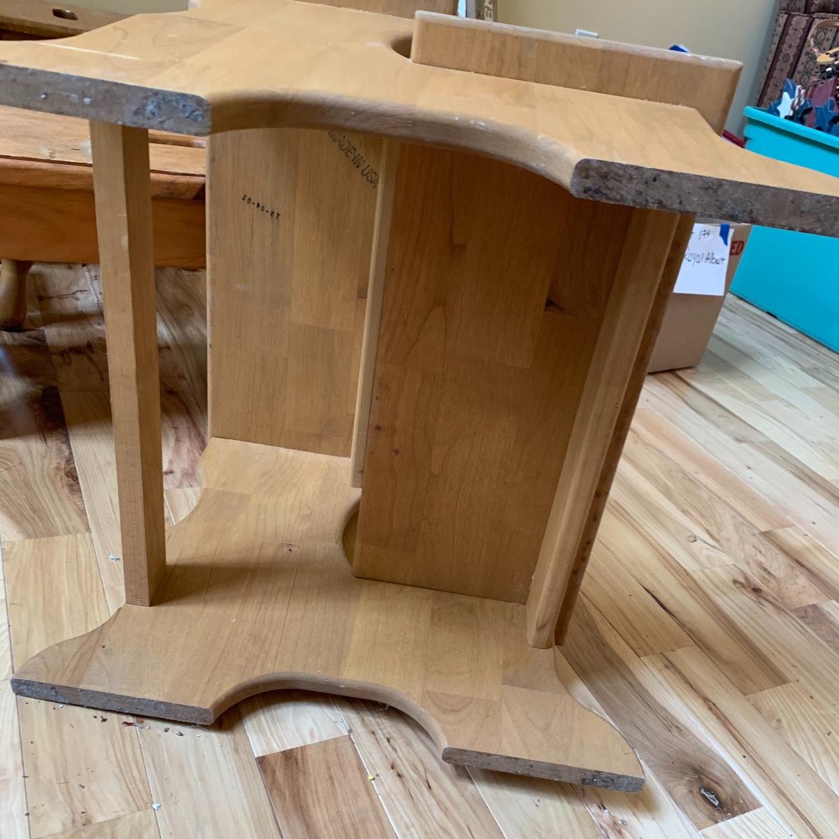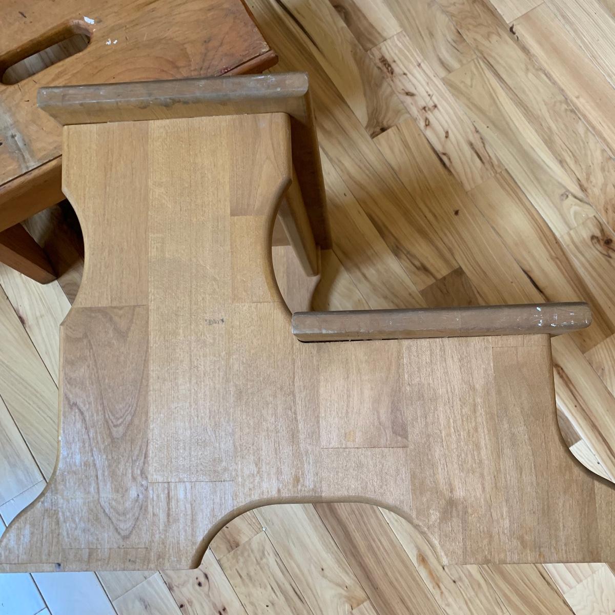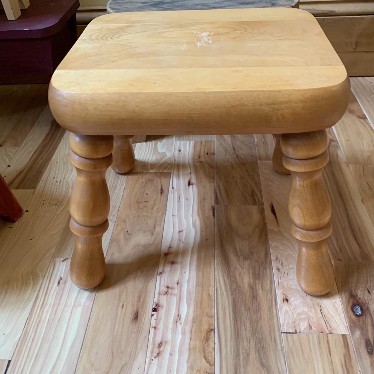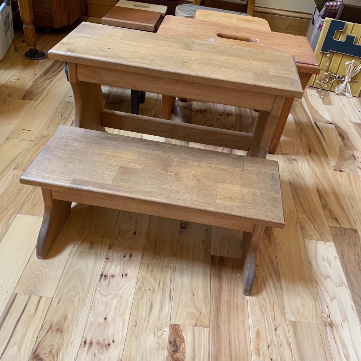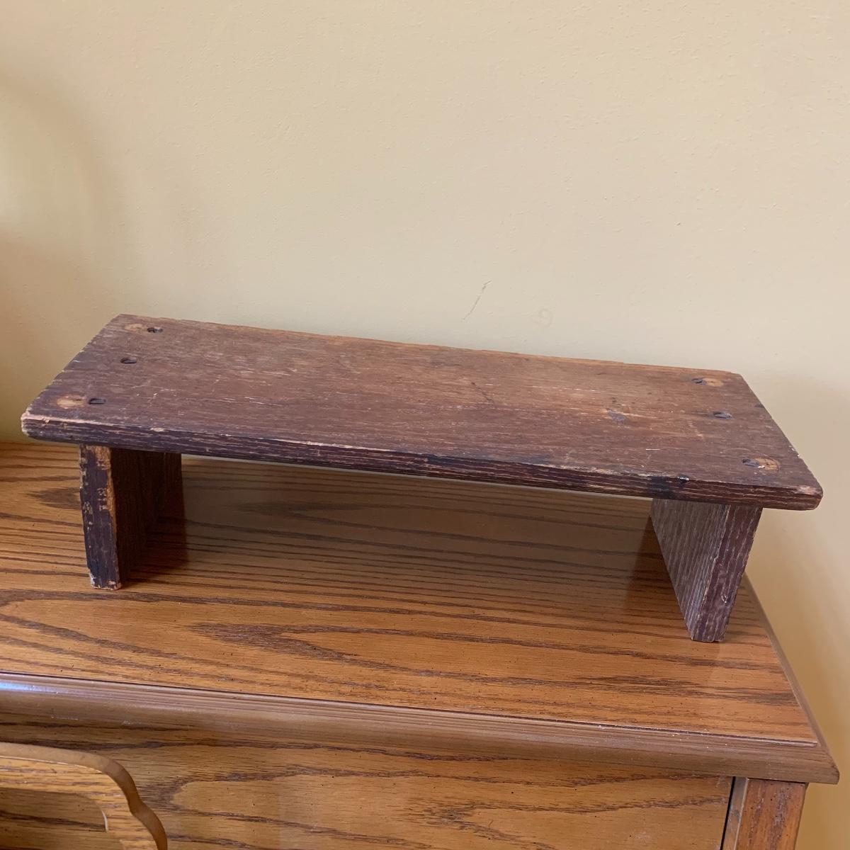 This lot includes eleven stools or risers. Wow! There is every shape and size and they all are made of wood. Only one stool with turned legs has stamped "Made in the USA" on the bottom. That one measures 9” x 10” x 11”. The largest two step stool measures 20” x 19” x 14” and is quite sturdy. The rest are a combination of stools with holes in the top for handling and simple little ones that may be best for dolls or display. This lot will always help reach any item. Local pick up only.