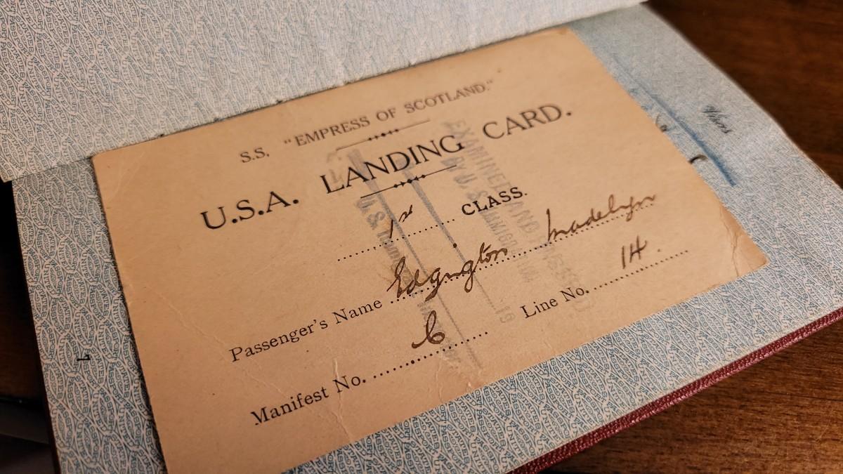 This Antique Passport w/ Entry through Laredo Texas originally is a wonderful artifact that records the journey from Scotland to the United States for a young woman named Madelyn. History artifact at its finest. A few of the pages are loose but appears mostly intact. 8.5 out of 10 condition.