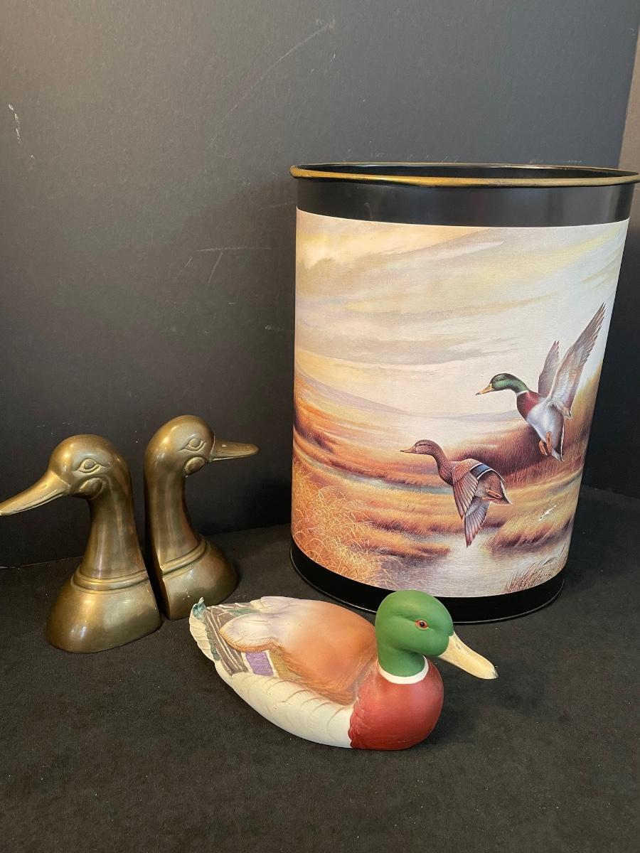 Includes a pair of duck bookends, Vintage Duck by Andrea by Sadek made in Japan "Mallard Duck" and a duck waste bin.