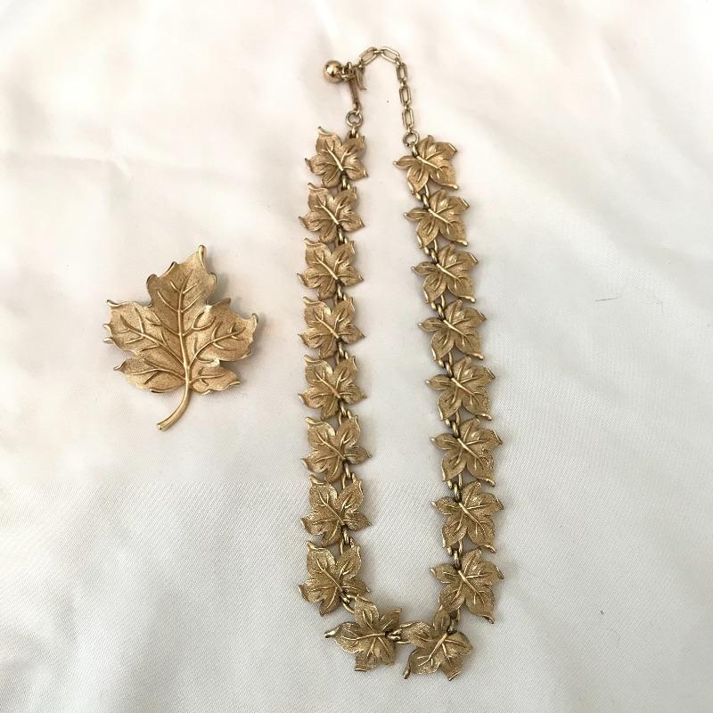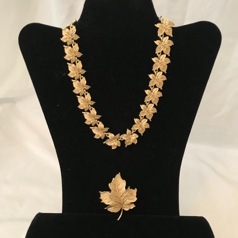Perfect timing to celebrate Leaf Season with this Trifari duo. Set includes a matching 2” pin with a classic leaf design. See photos. Shipping available.