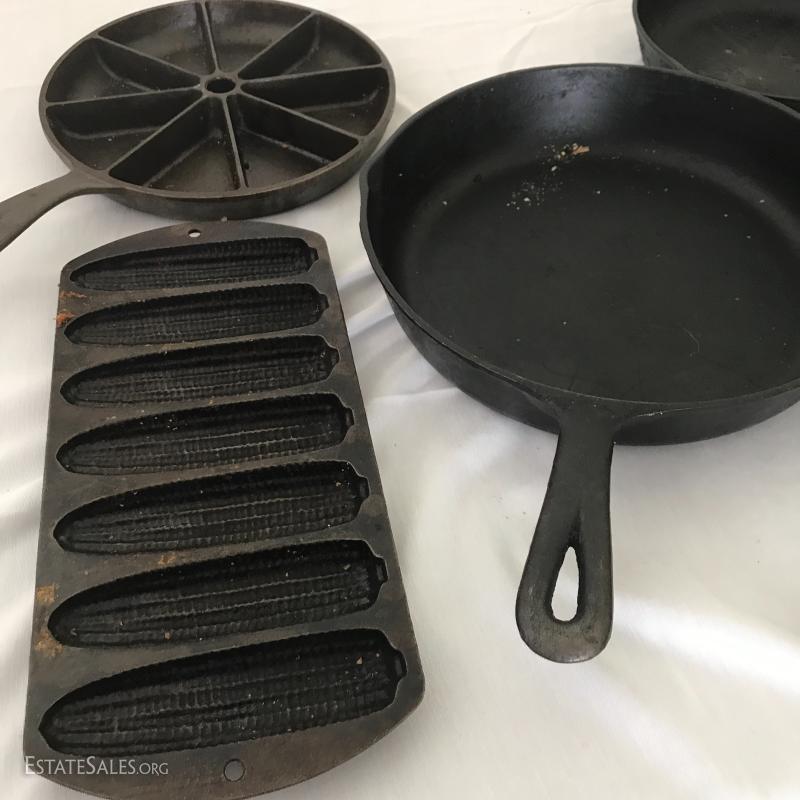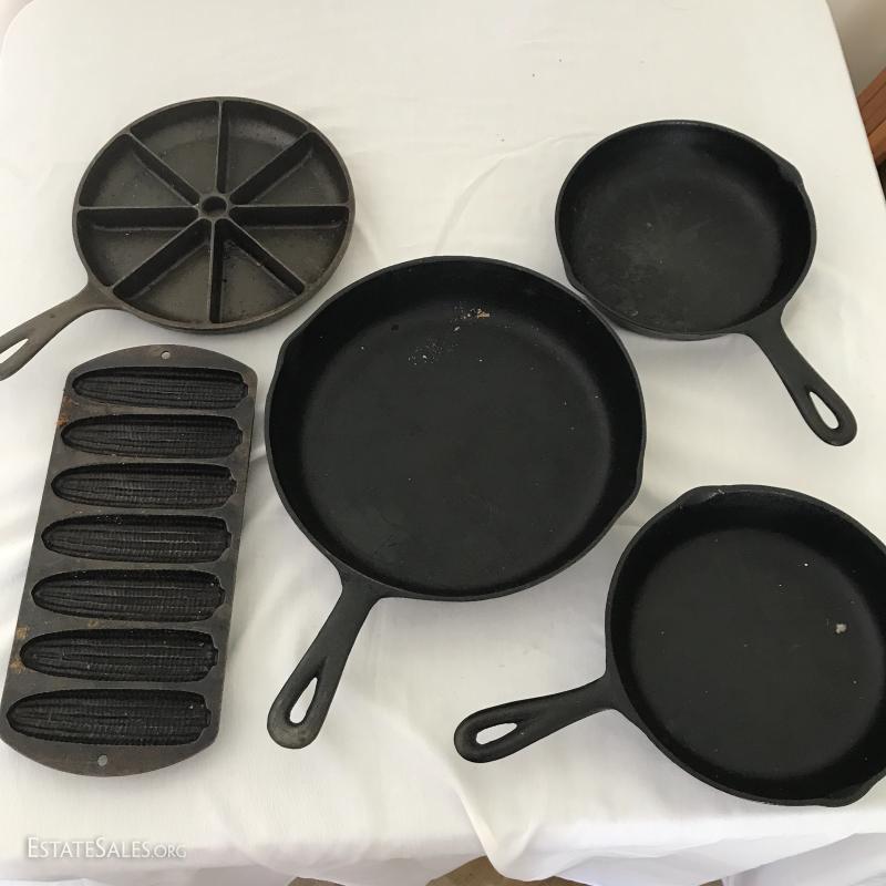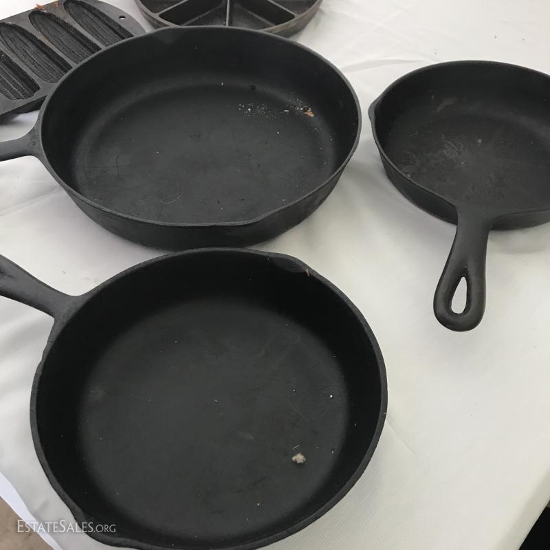 Cast iron cookware in a variety of shapes and sizes. Biggest saucepan is 11" d. Smallest is 8" d. See pictures. Shipping or Local pick up in Mills River, NC.