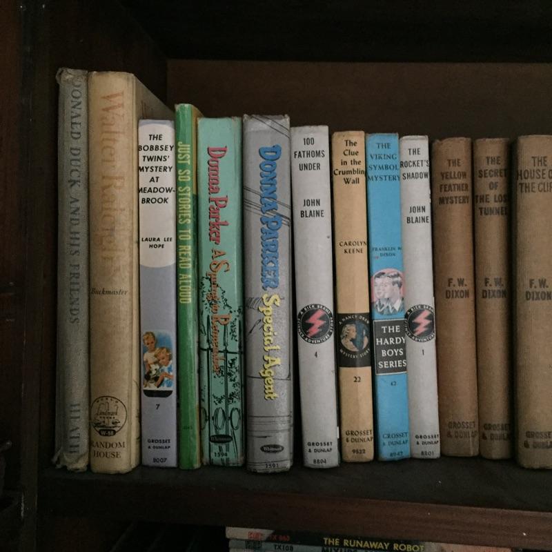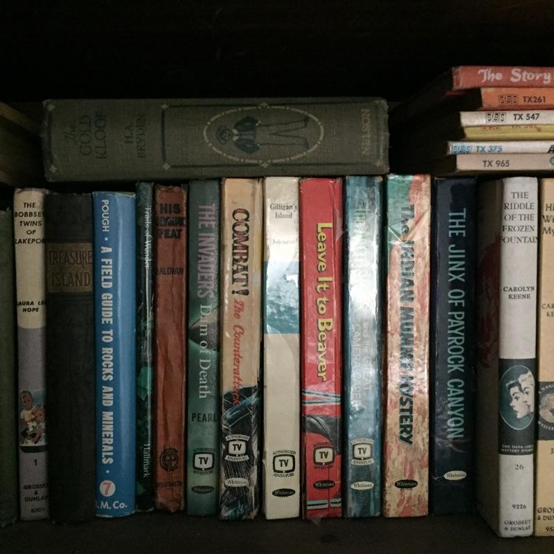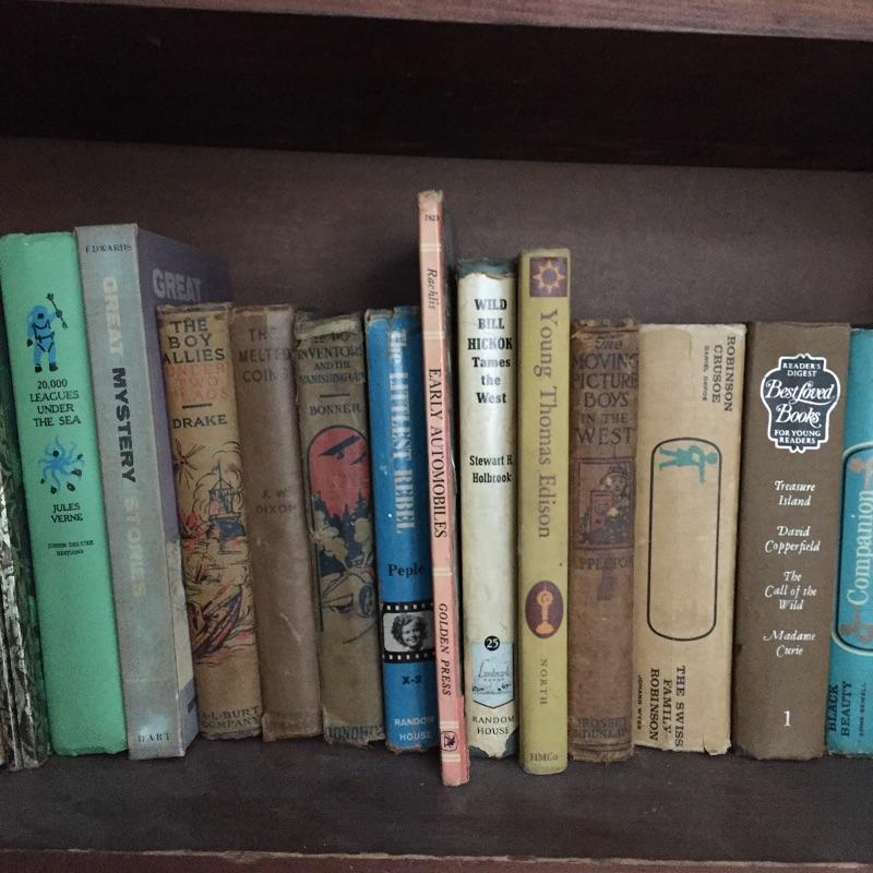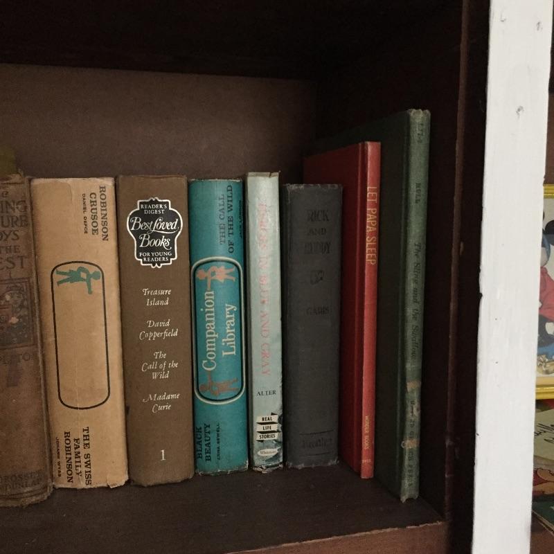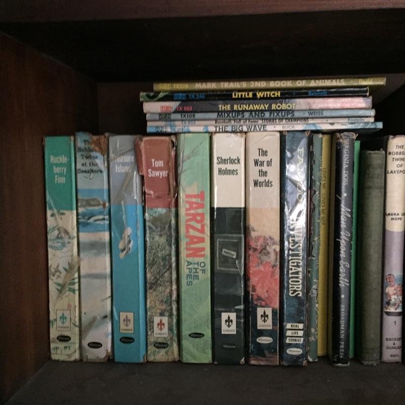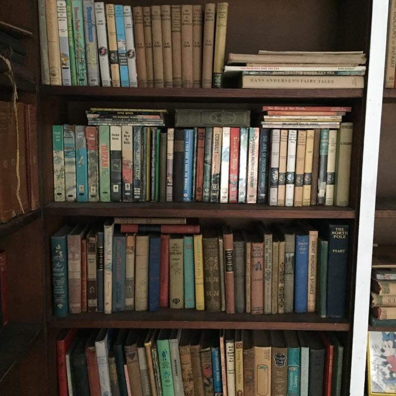 Huge selection of vintage children’s books including Tarzan , Leave it to Beaver , Huckleberry Finn , Tom Sawyer , The North Pole and many more. Great colorful pages and covers. Good condition. Bookcase not included.