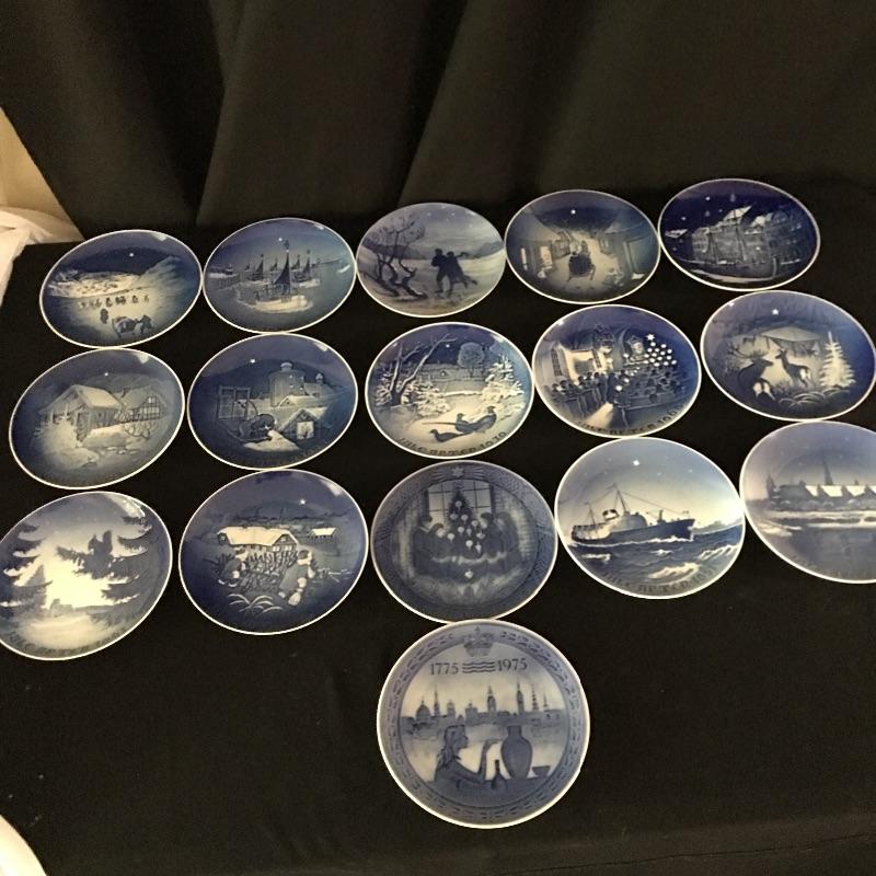 A superb collection of no less than sixteen Danish collectible plates. Plates depict winter and Christmas scenes. See images for plate markings and more details.