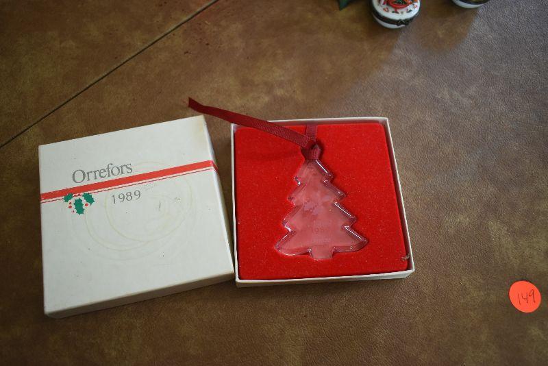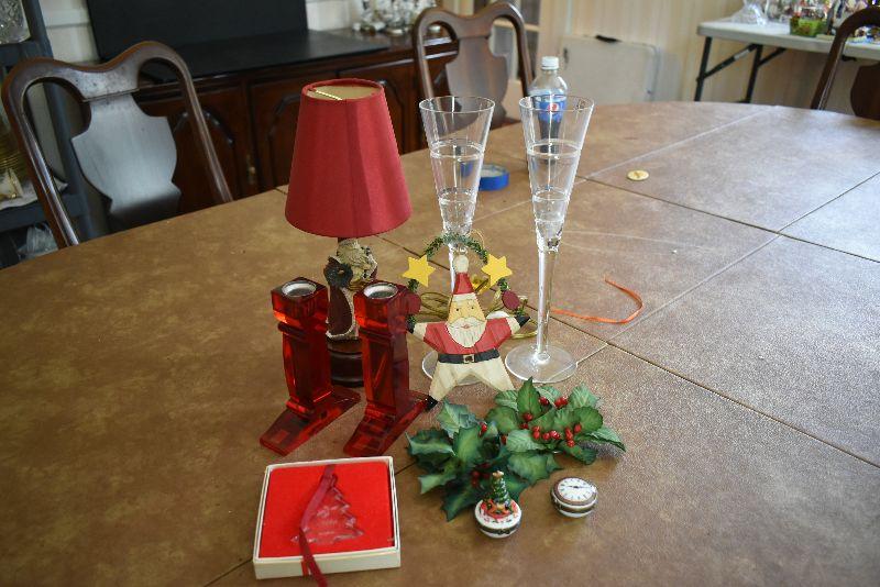 Orrefors crystal tree, Santa lamp, untested, champagne flutes, Midwest trinket boxes, and more.