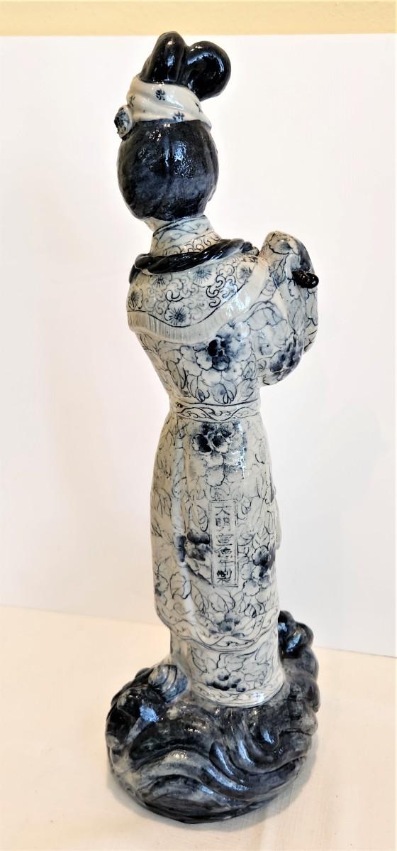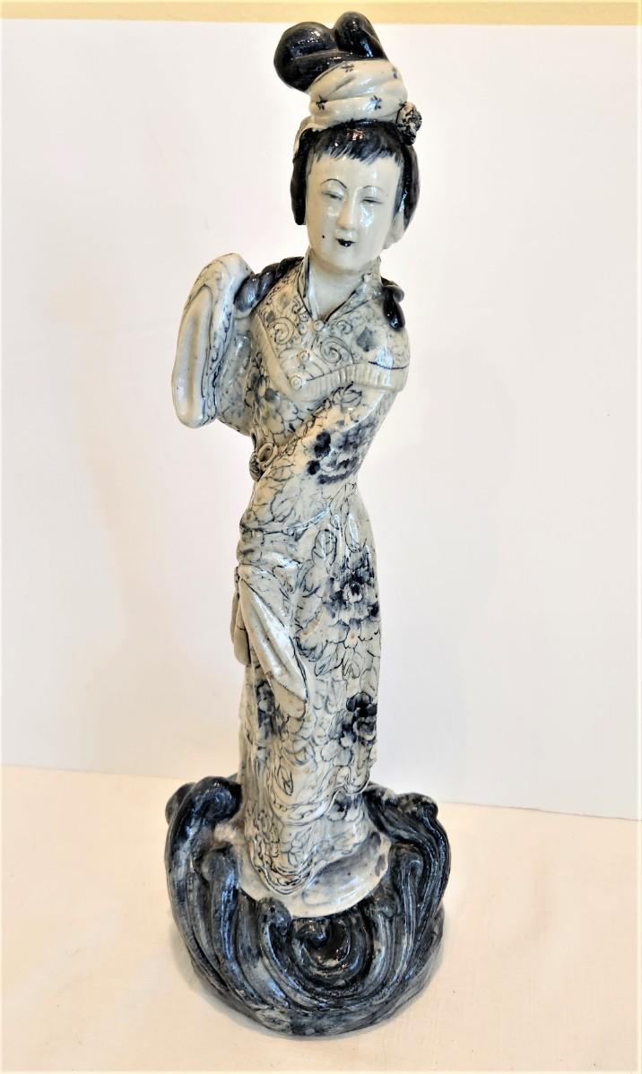 Decorative blue/white contemporary Geisha statue - 19" tall. Heavy. Good condition.