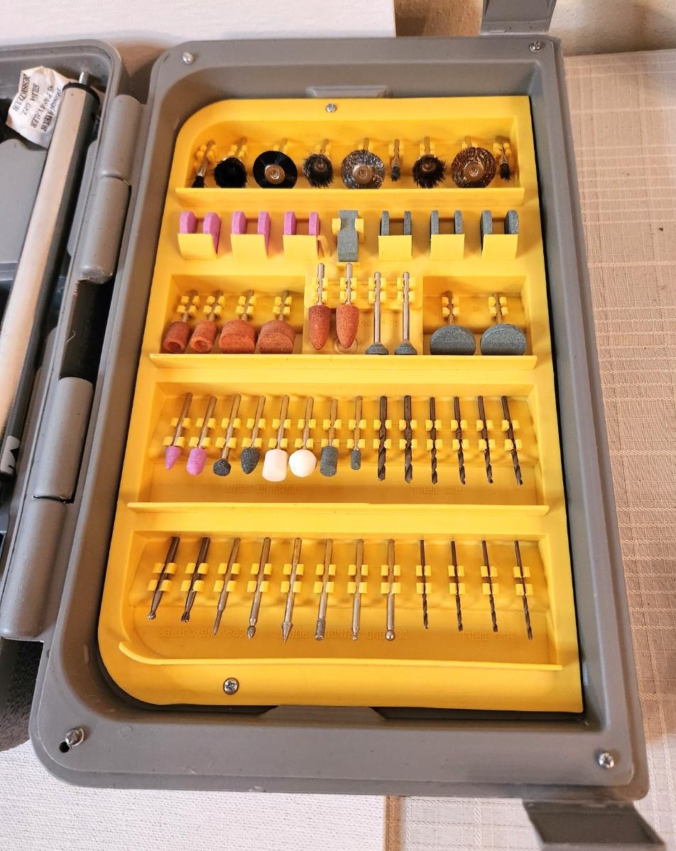 Perfect for the woodworker or hobbyist - nice Dremel kit in case - complete - looks unused.
